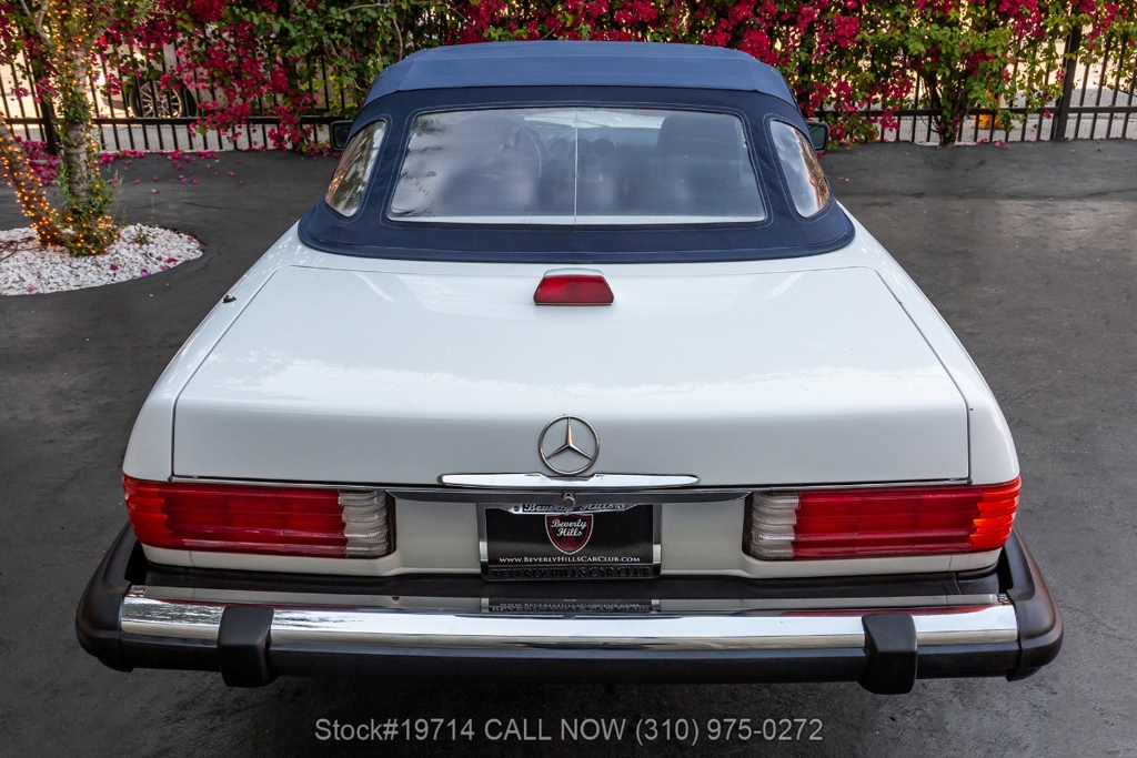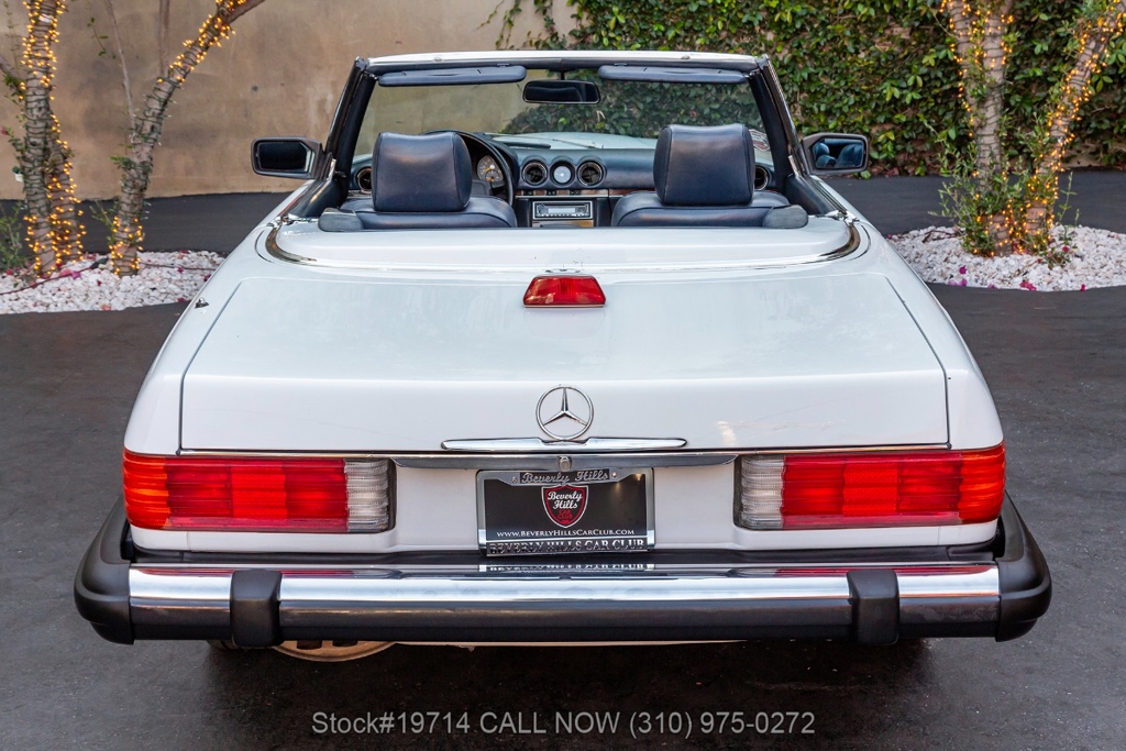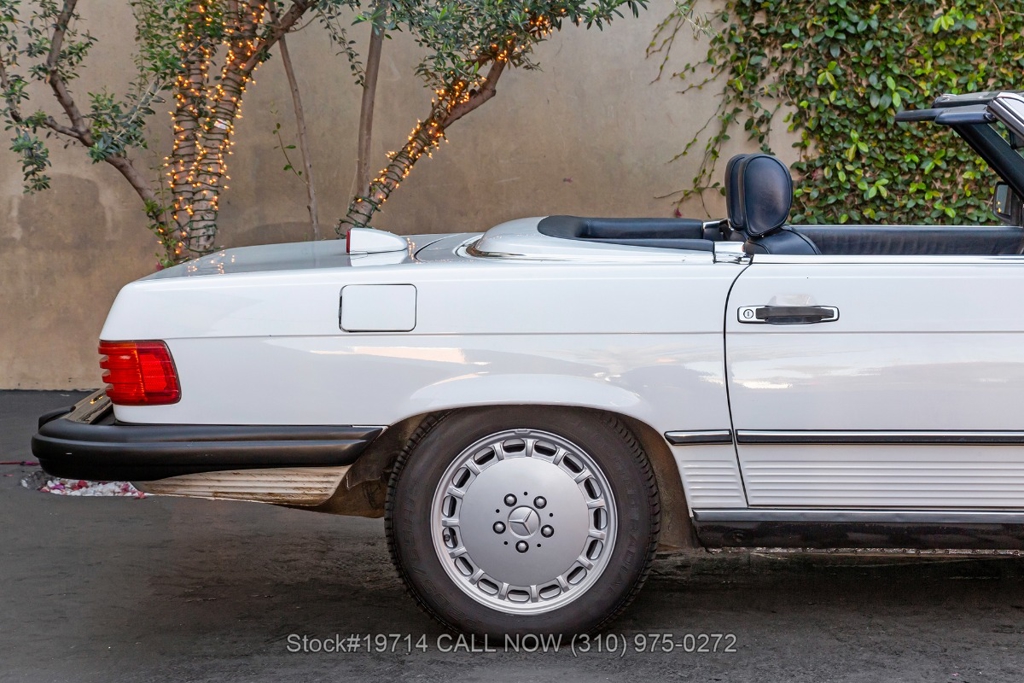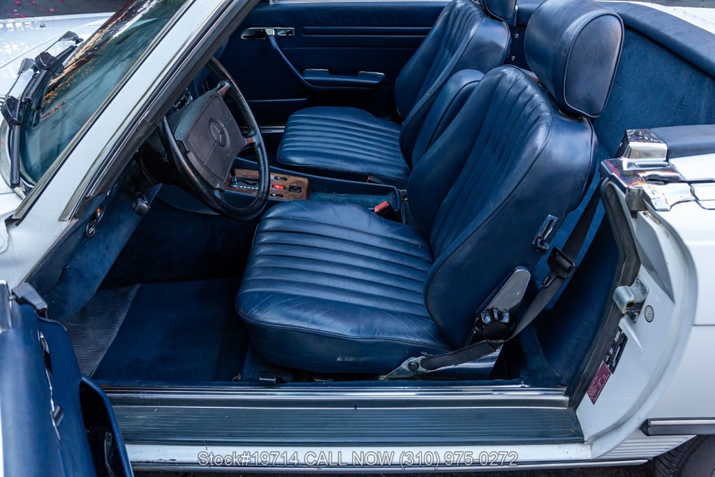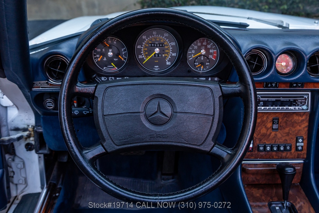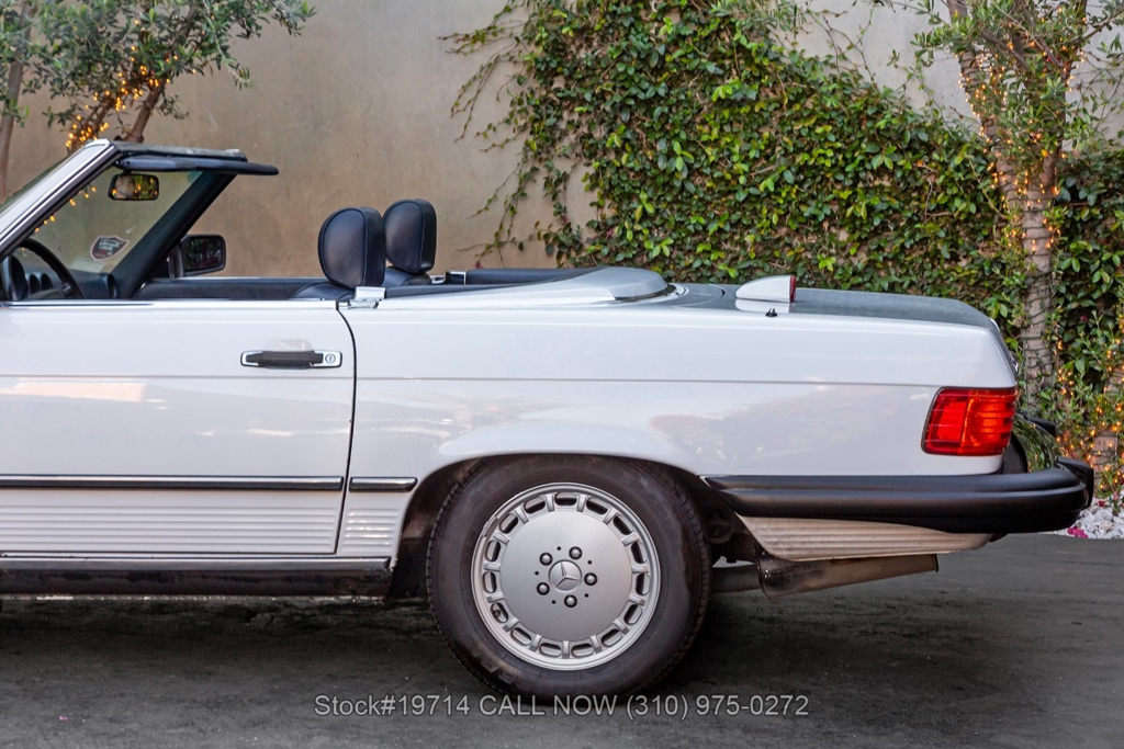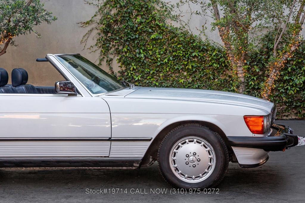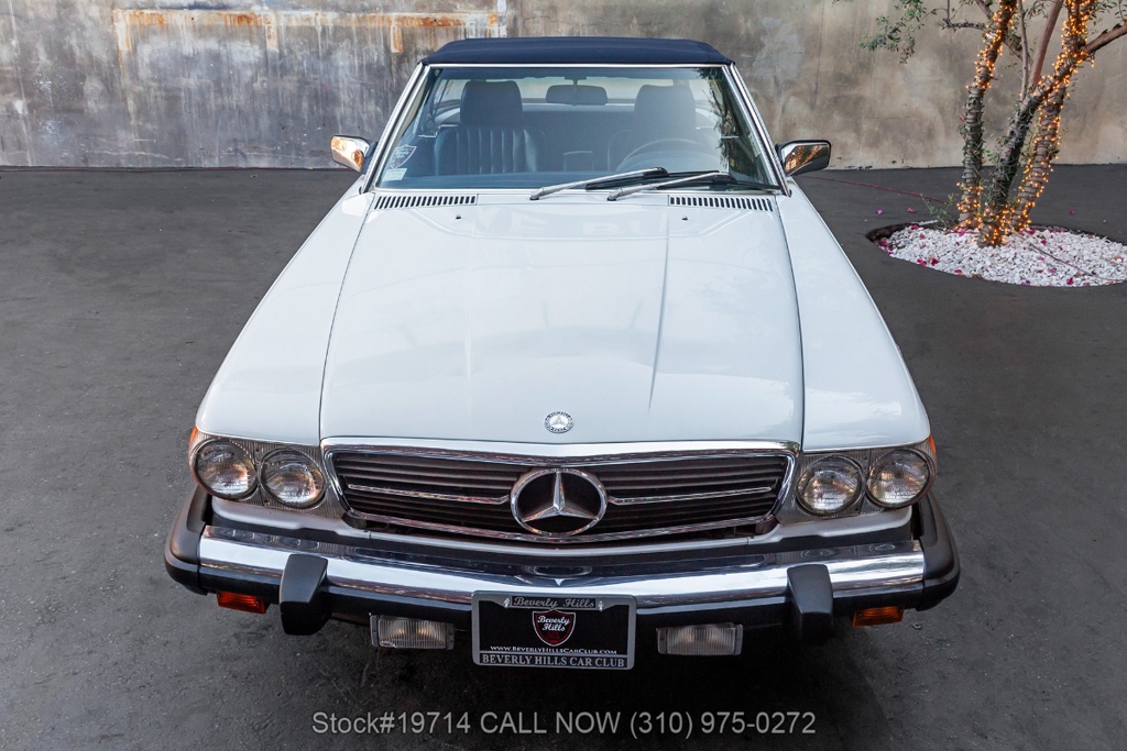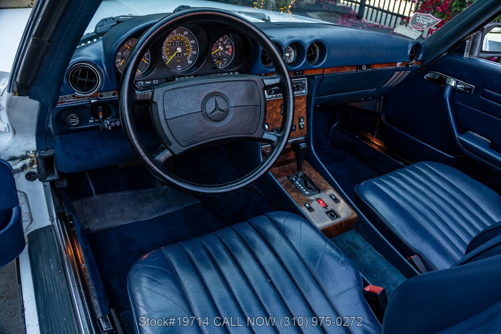 Introducing this 1987 Mercedes-Benz 560SL with 2 tops that is finished in its factory color scheme of Arctic White (147) complemented with a Royal Blue (272) interior. First and foremost, this 560SL comes with two tops, providing you with the option to cruise with the body-color removable hardtop or enjoy the convertible soft top.