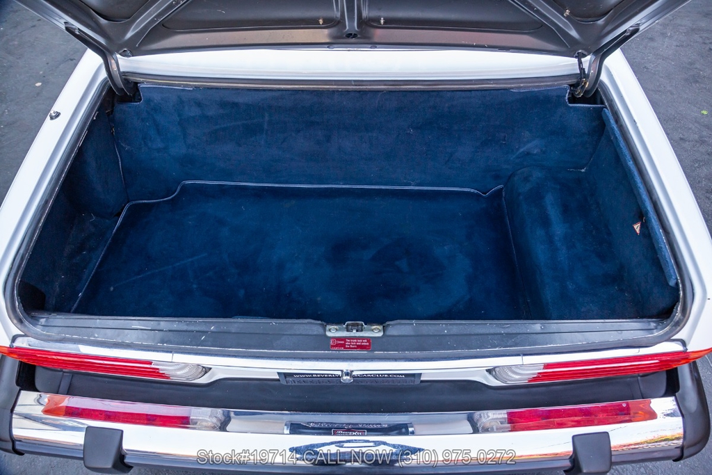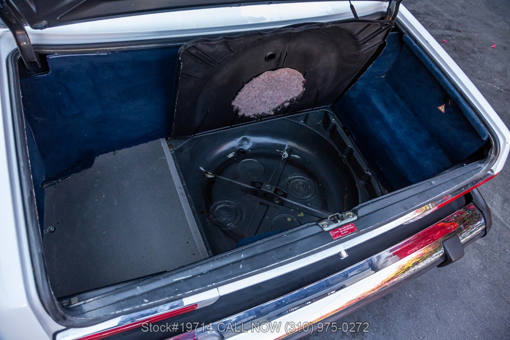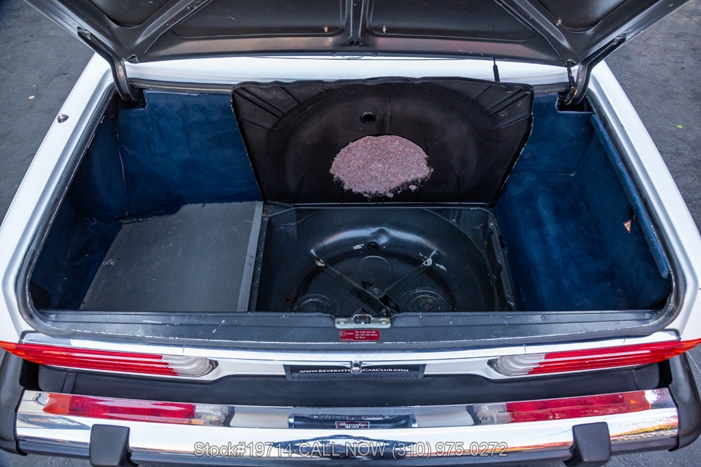 Powered by a fuel-injected V8 engine and an automatic transmission. Additional equipment includes power-assisted four-wheel disc brakes, twin exhaust finishers, power-assisted steering, Behr radiator, VDO instrumentation, chrome bumpers with rubber guards, body side moldings, quadruple headlamps, Bosch-branded front fog lights, Steel-belted radial tires, 15-inch Gullideckel-style wheels, and a full-size spare tire fitted in the trunk. Convenience features include bucket seats, air conditioning, power-operated windows, cruise control, dual-side rearview mirrors (electrically adjustable on the right), 4-spoke steering wheel, center console, glove box, analog clock, a Kenwood radio, and a fender-mounted antenna.