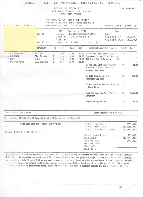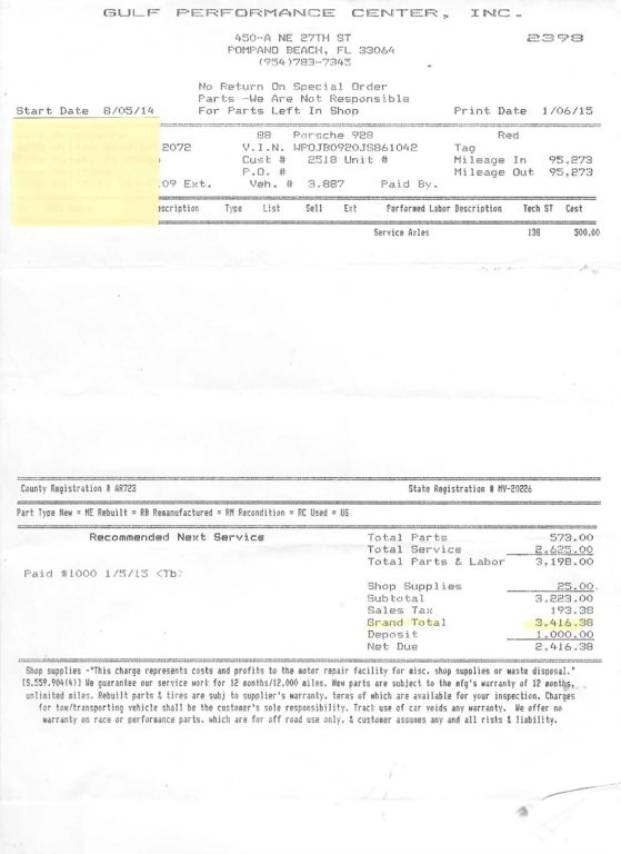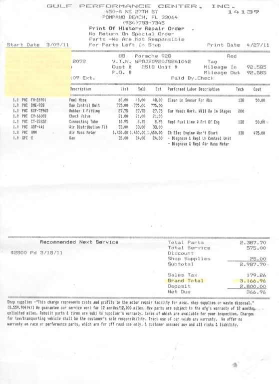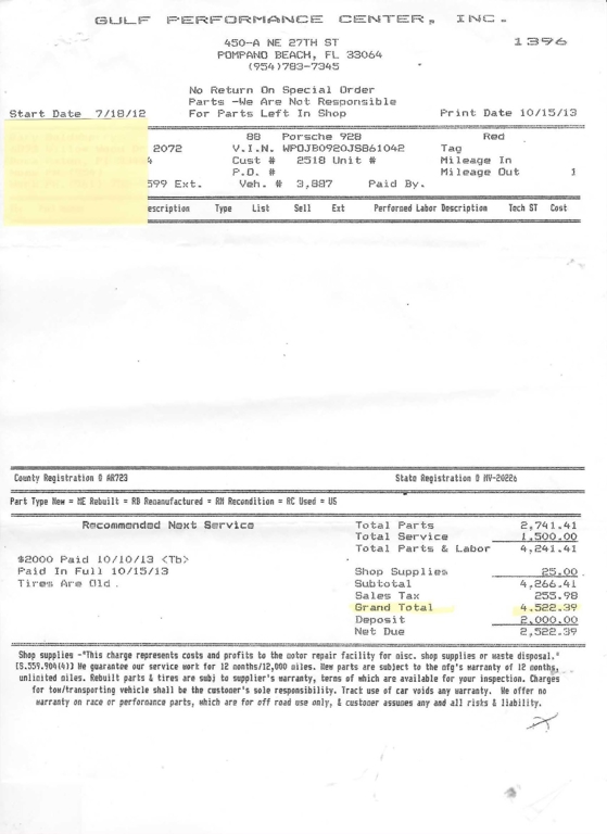 - $20,325.99 in Service Receipt Copies