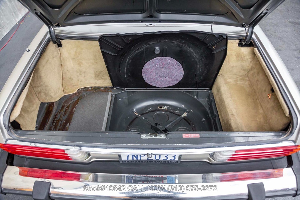 Powered by a fuel-injected V8 engine and an automatic transmission. Additional equipment includes power-assisted four-wheel disc brakes, twin exhaust finishers, power-assisted steering, VDO instrumentation, chrome bumpers with rubber guard, body side moldings, quadruple headlamps, Kumho tires, 15-inch Gullideckel-style wheels, tool roll, and a full-size spare tire fitted in the trunk. Convenience features include adjustable bucket seats with head restraints, air conditioning, power-operated windows, dual-side rearview mirrors, 4-spoke steering wheel, center console, glove box, door pockets, and a Becker Grand Prix radio.