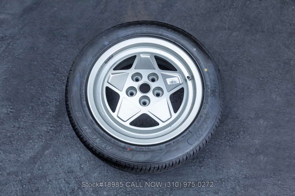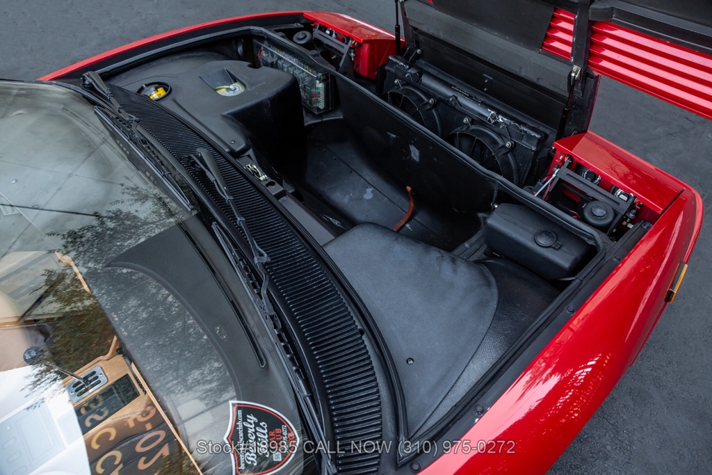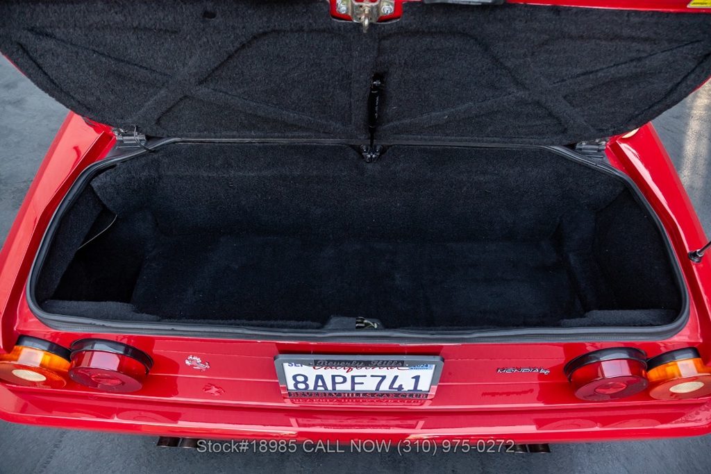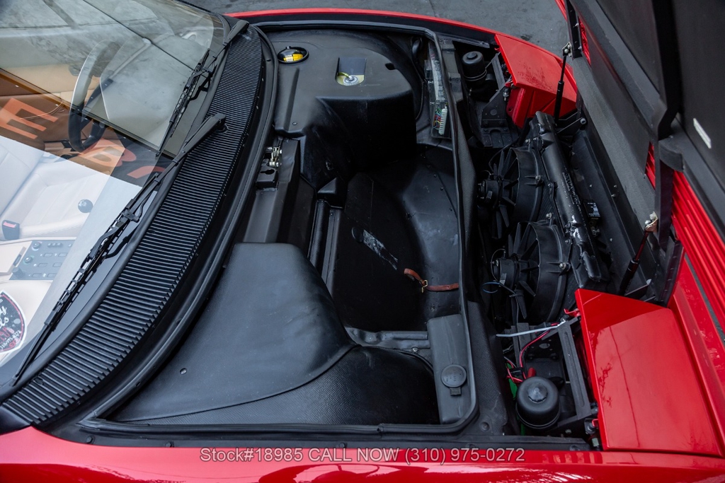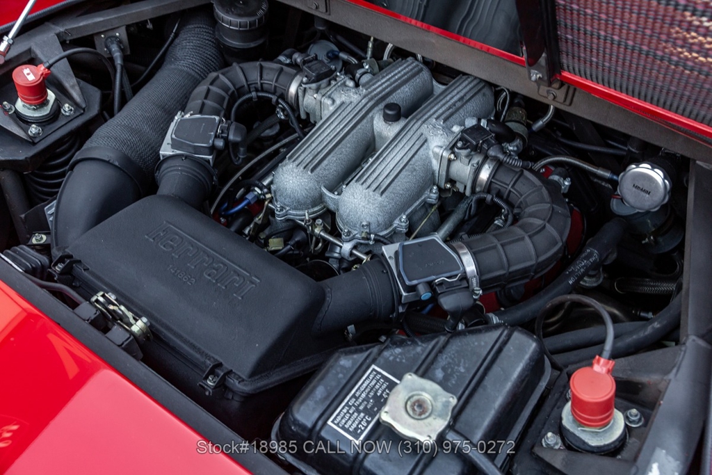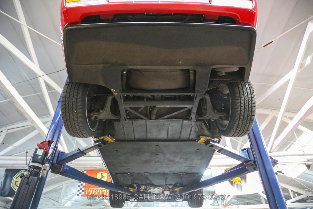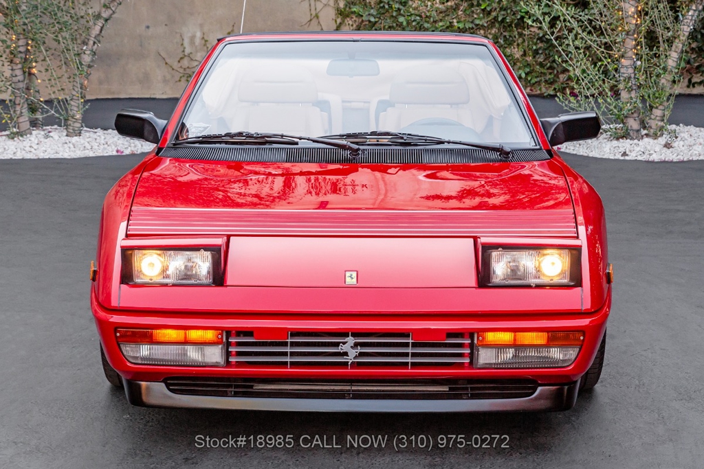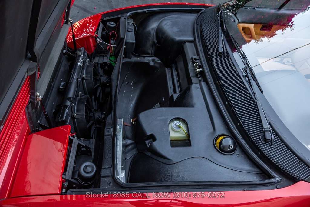 Equipped with a 5-speed manual transmission, V8 engine, four-wheel disc brakes, power steering, quad exhaust outlets, Veglia instrumentation, black convertible soft top, boot cover, a gated shifter, retractable headlights, side air intakes, Pininfarina badges, Pirelli tires, 18-inch alloy wheels with Ferrari-branded center caps, full-size spare tire, and a Schedoni leather tool kit. Convenience features include air conditioning, power windows, bucket seating, dual-side rearview mirrors, center console, door pockets, tilt 3-spoke steering wheel, Kenwood radio, and Carello-branded front fog lights.
