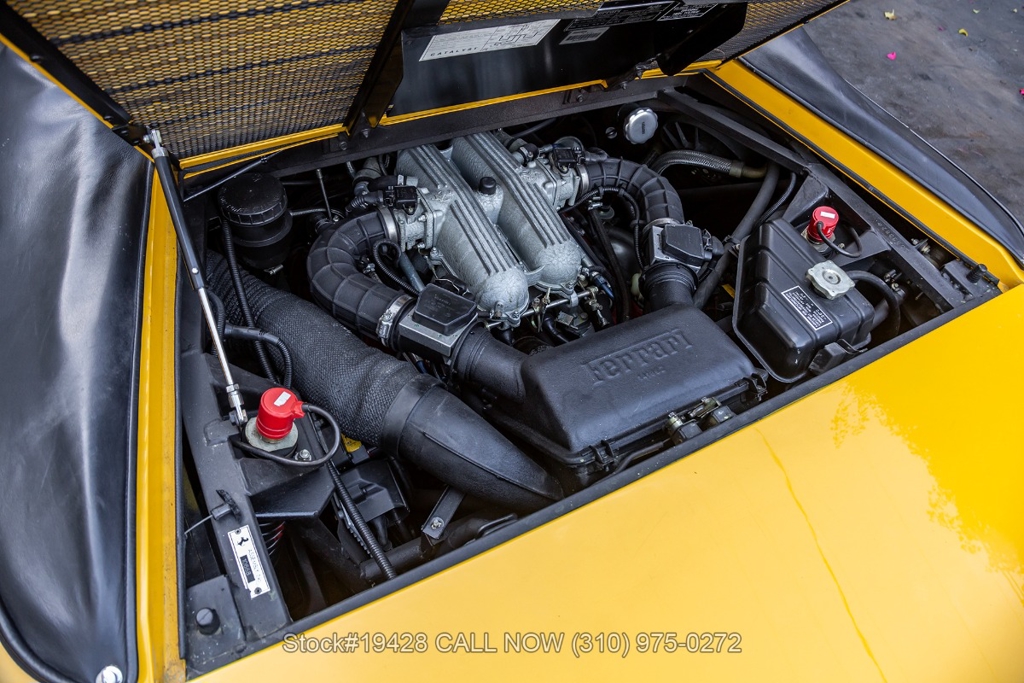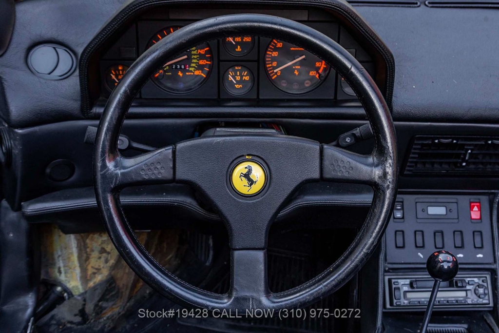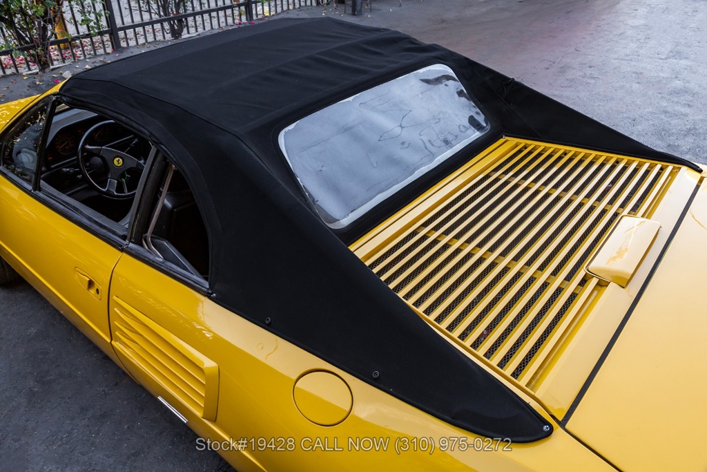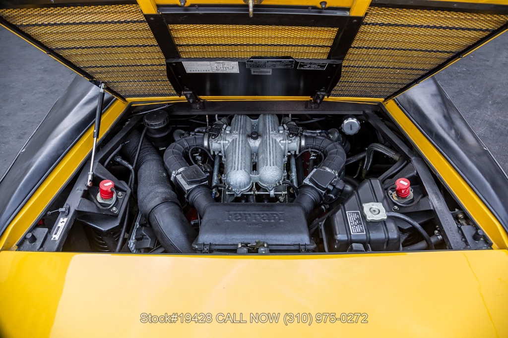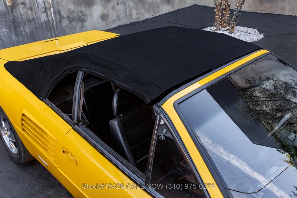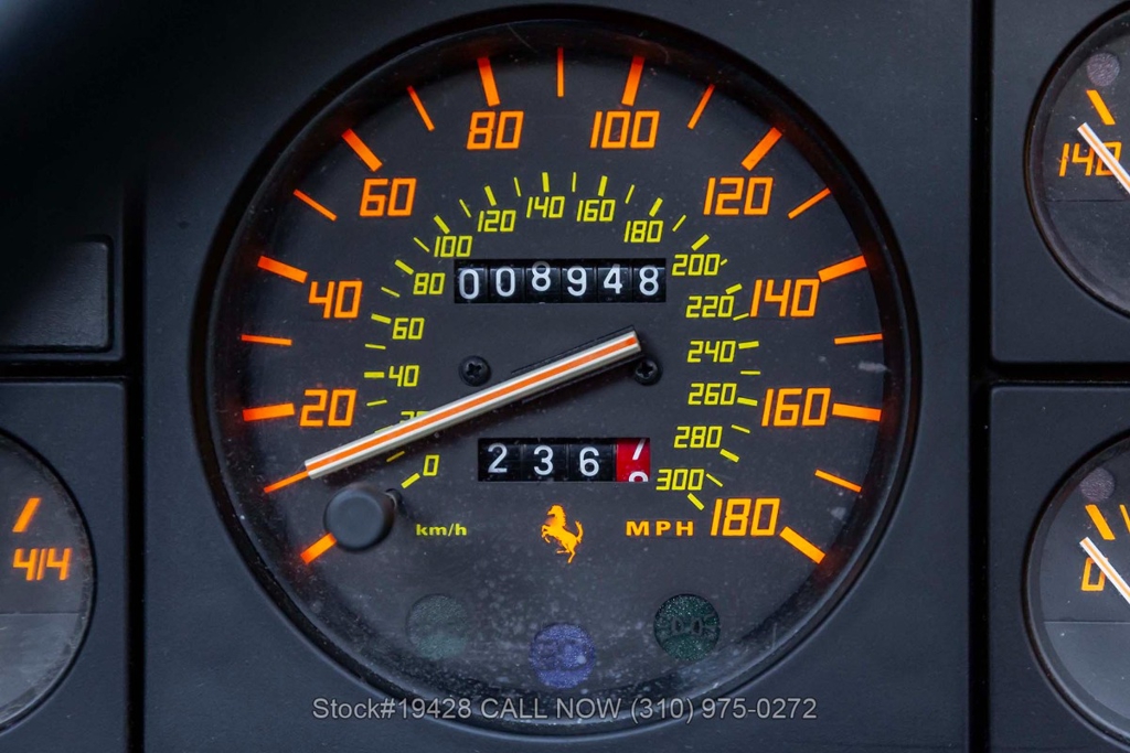 Powered by a mid-mounted V8 and paired with a 5-speed manual transmission, this Mondial T features four-wheel disc brakes, power steering, dual exhaust outlets, and Veglia instrumentation. Its design includes a black convertible soft top, boot cover, gated shifter, retractable headlights, side air intakes, Pininfarina badges, Goodyear tires, and 16-inch alloy wheels with Ferrari-branded center caps. Comfort and convenience are addressed with air conditioning, power windows, bucket seats, dual-side rearview mirrors, a center console, 3-spoke steering wheel, Kenwood radio, and a fender-mounted antenna.