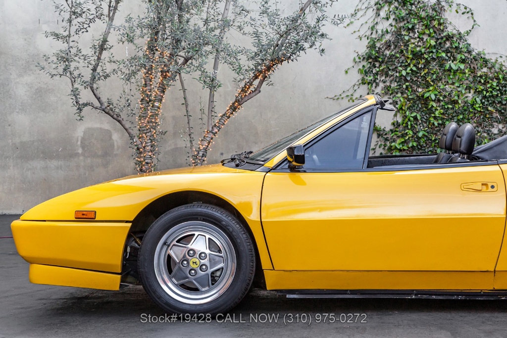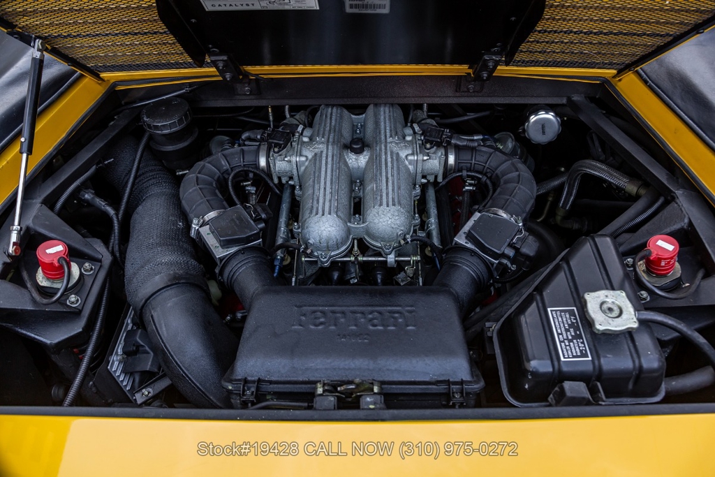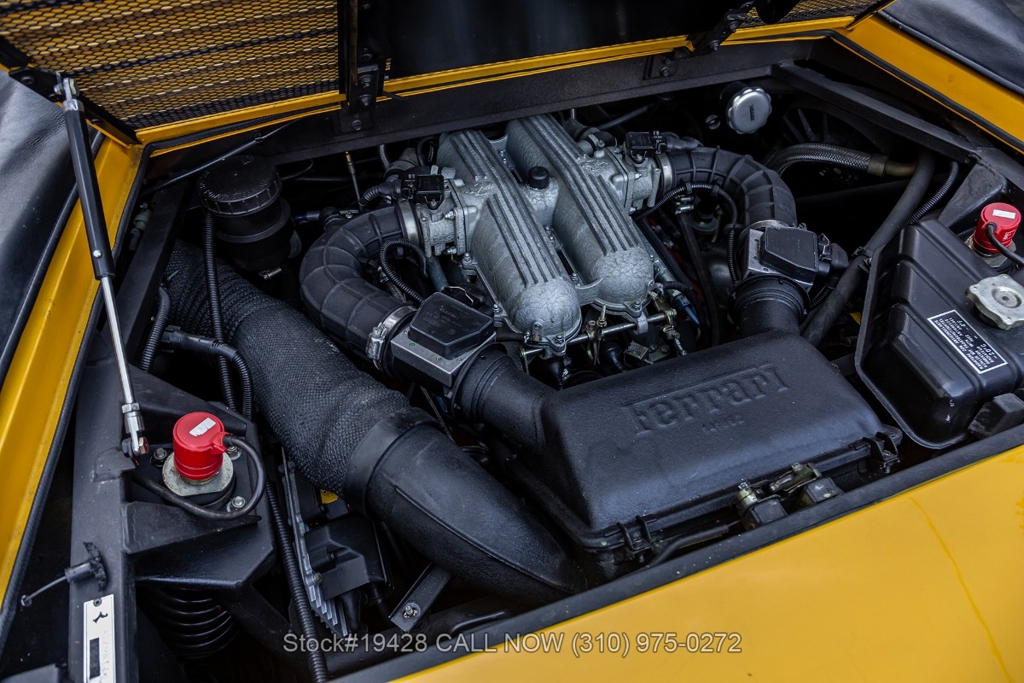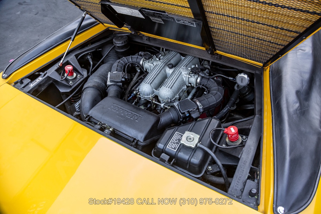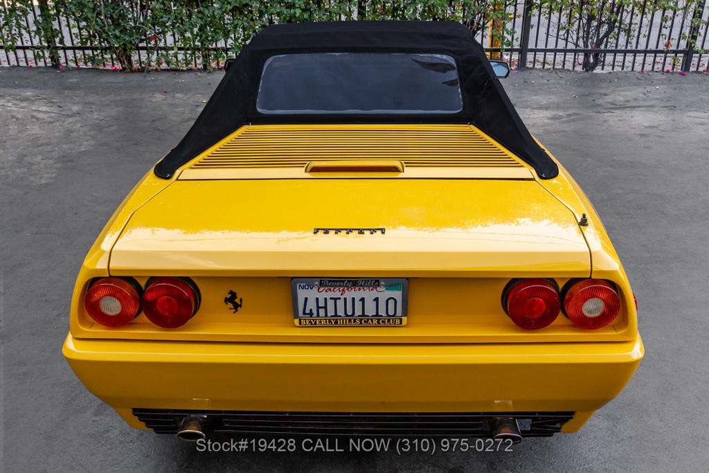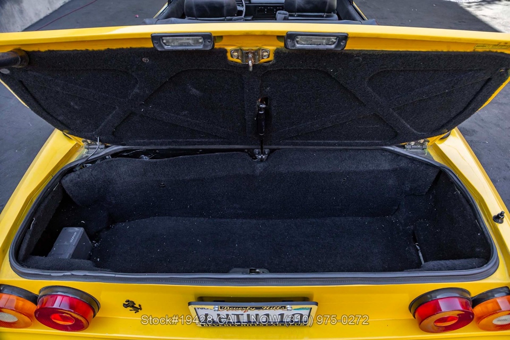 Powered by a mid-mounted V8 and paired with a 5-speed manual transmission, this Mondial T features four-wheel disc brakes, power steering, dual exhaust outlets, and Veglia instrumentation. Its design includes a black convertible soft top, boot cover, gated shifter, retractable headlights, side air intakes, Pininfarina badges, Goodyear tires, and 16-inch alloy wheels with Ferrari-branded center caps. Comfort and convenience are addressed with air conditioning, power windows, bucket seats, dual-side rearview mirrors, a center console, 3-spoke steering wheel, Kenwood radio, and a fender-mounted antenna.