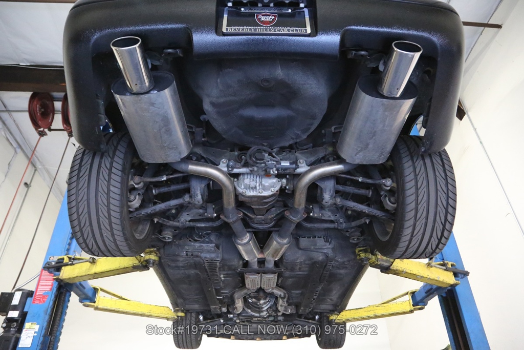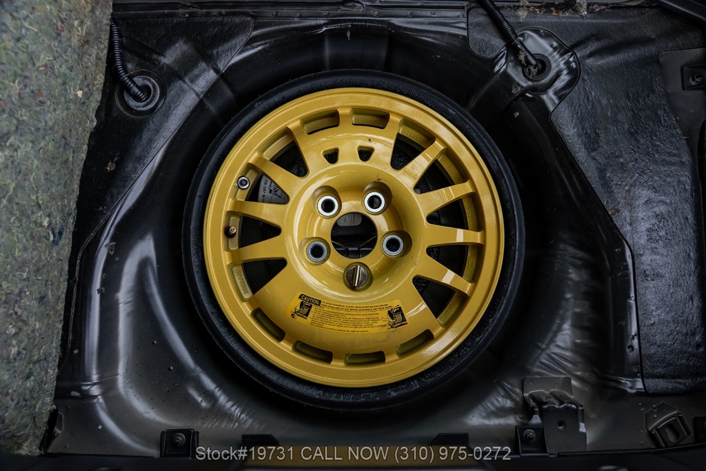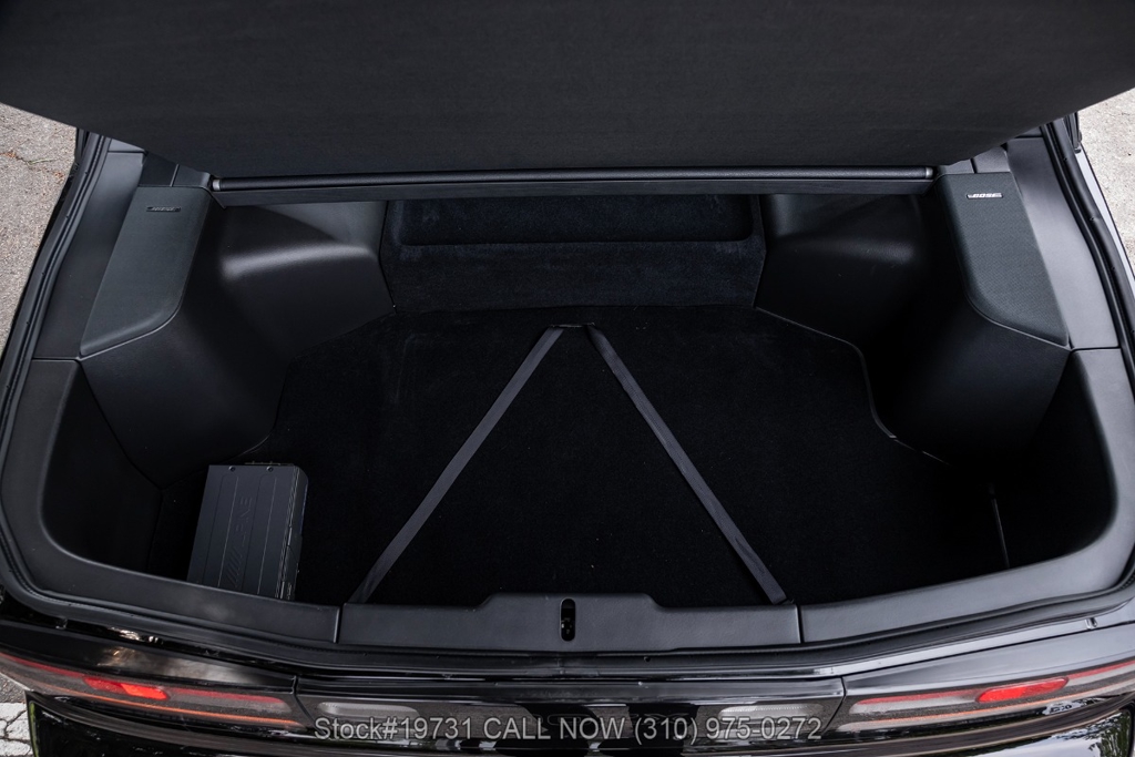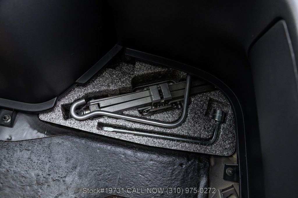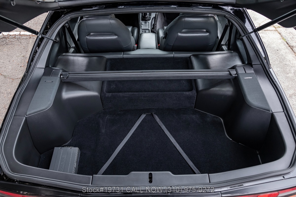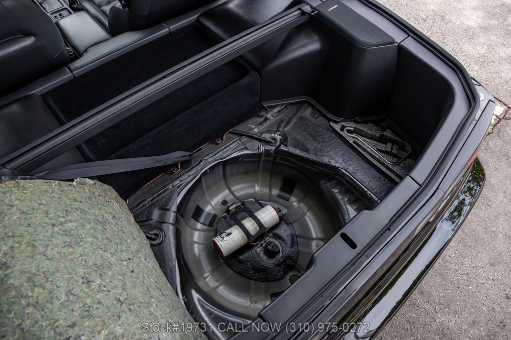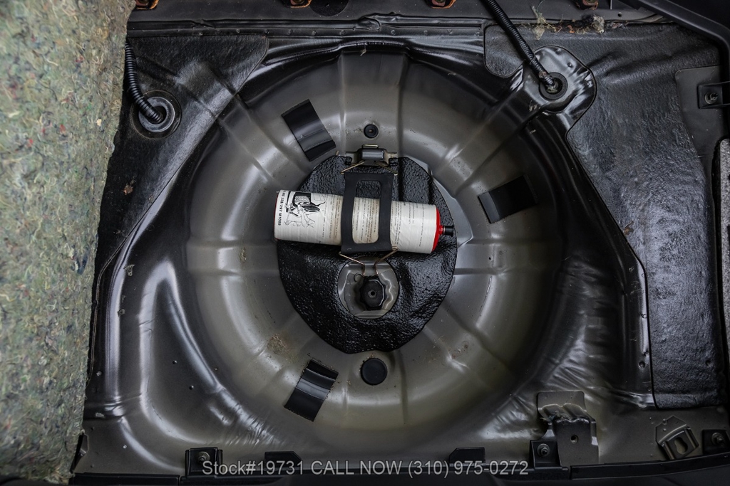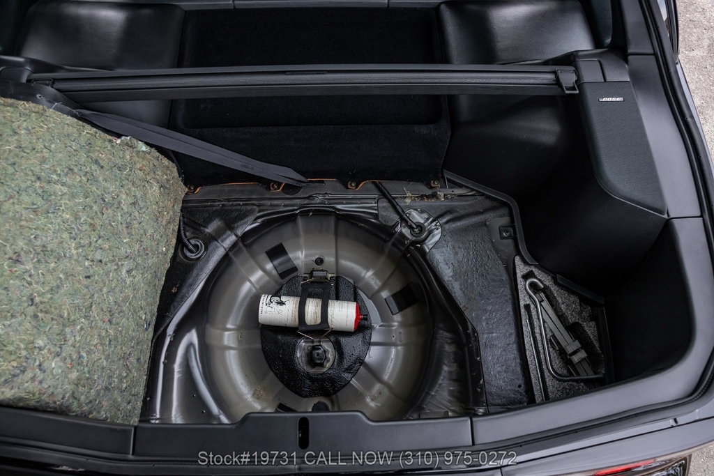 Inside, the two-place cabin is well-equipped with sport bucket seats, air conditioning, cruise control, power windows and mirrors, and a Bose audio system. Additional conveniences include a center console, glove box, retractable cargo privacy cover, and a space-saver spare tire housed in the trunk. Carbon fiber-style trim accents add a subtle modern touch to the interior.