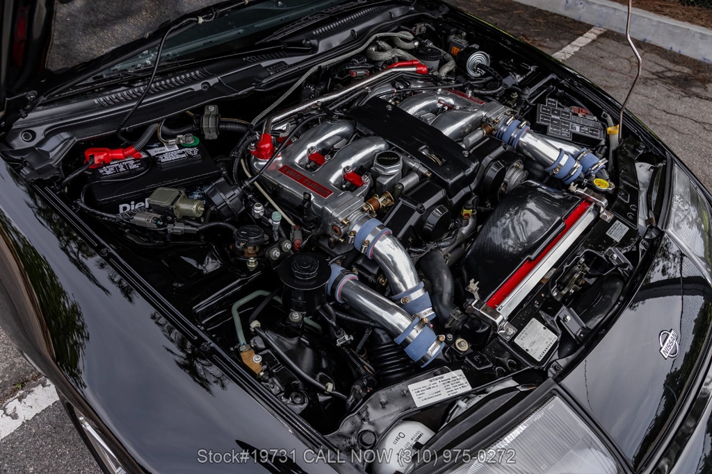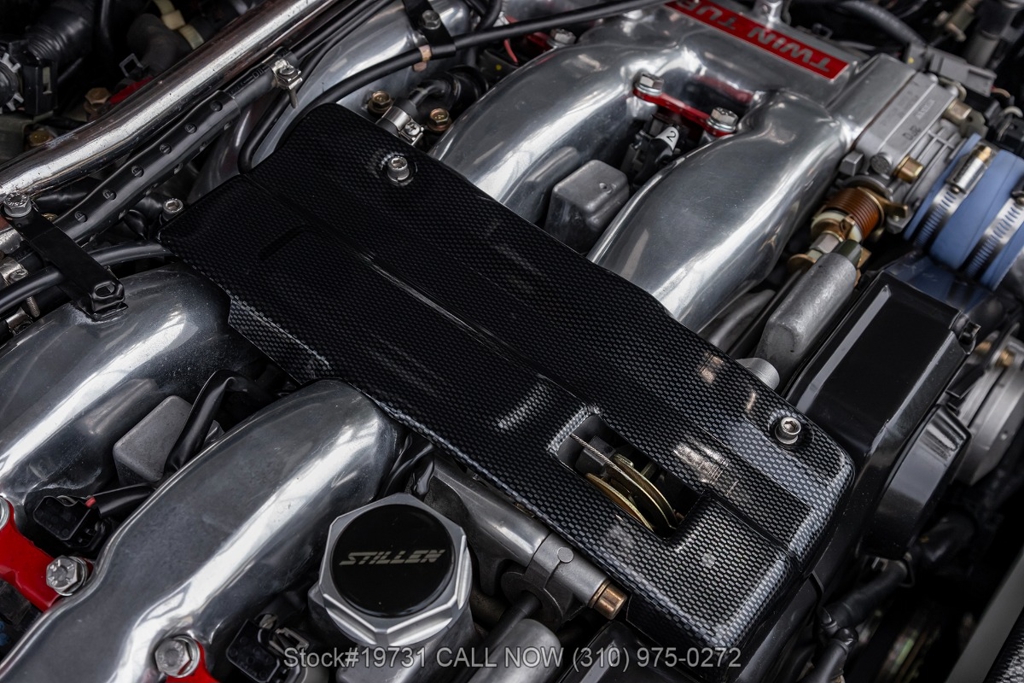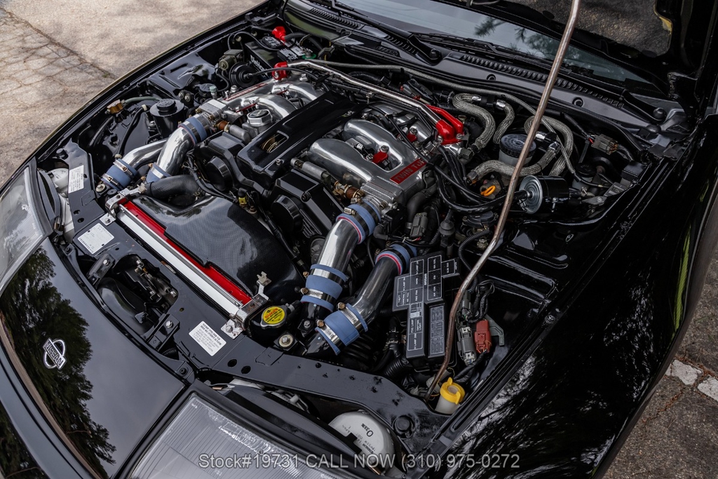 Power comes from a twin-turbocharged 3.0L V6 engine paired with a 5-speed manual transmission, delivering a responsive and engaging driving experience. Equipped with power steering and four-wheel disc brakes featuring red Nissan calipers, this 300ZX is built with both performance and control in mind. The addition of upgraded intercooler piping and a front strut tower brace further complement its performance-oriented setup.