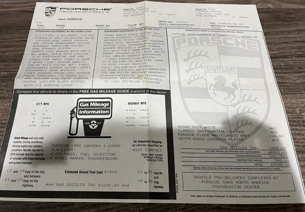 1995 Porsche 911 Carrera 4 Coupe 6-Speed Coupe