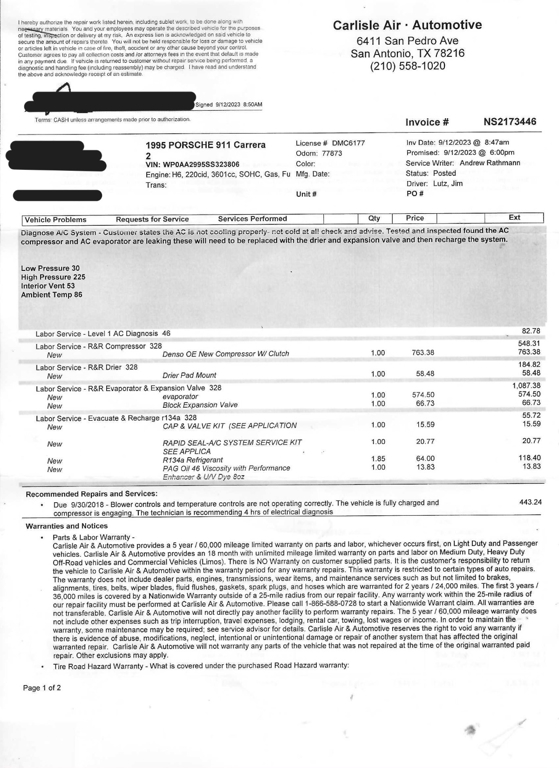Once full payment is received, the Seller will provide clear title, Bill of Sale and additional Department of Motor Vehicle forms to you for signature. The forms must be completed before the Automobile is shipped or made available to you.