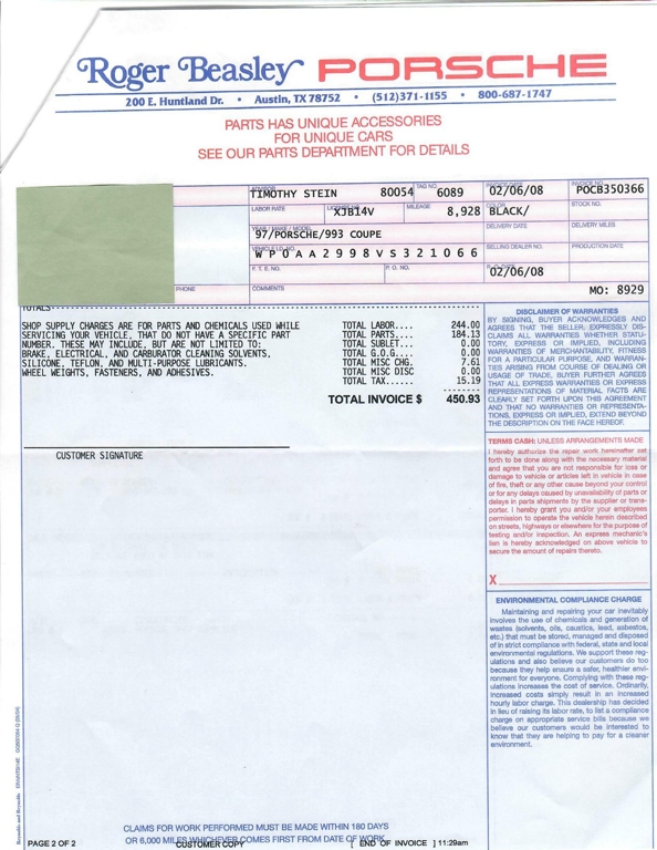 Once full payment is received, the Seller will provide clear title, Bill of Sale and additional Department of Motor Vehicle forms to you for signature. The forms must be completed before the Automobile is shipped or made available to you.