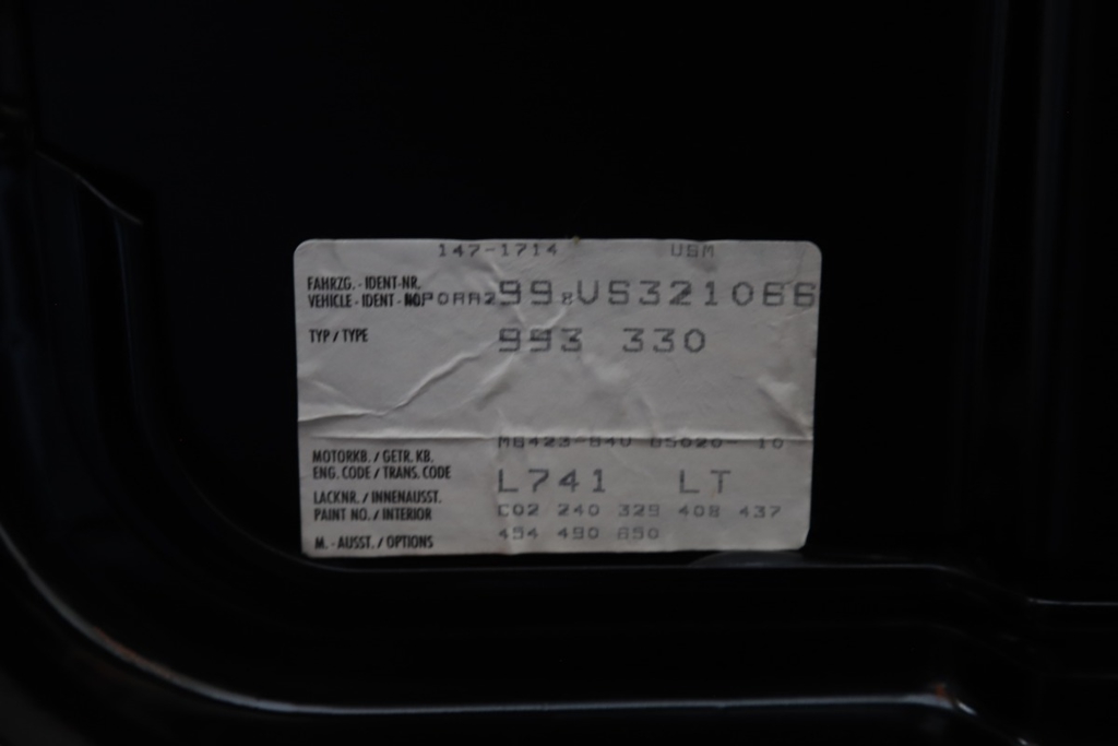 This 993 Carrera 2 Coupe is in concours condition, meaning it is in a near-perfect, show-quality state. It has been carefully cared for, preserving every detail to maintain its pristine condition. Even the original color code and options sticker remain under the hood, further confirming its authenticity. Further supporting its originality, paint meter readings are also available for inspection in the gallery.