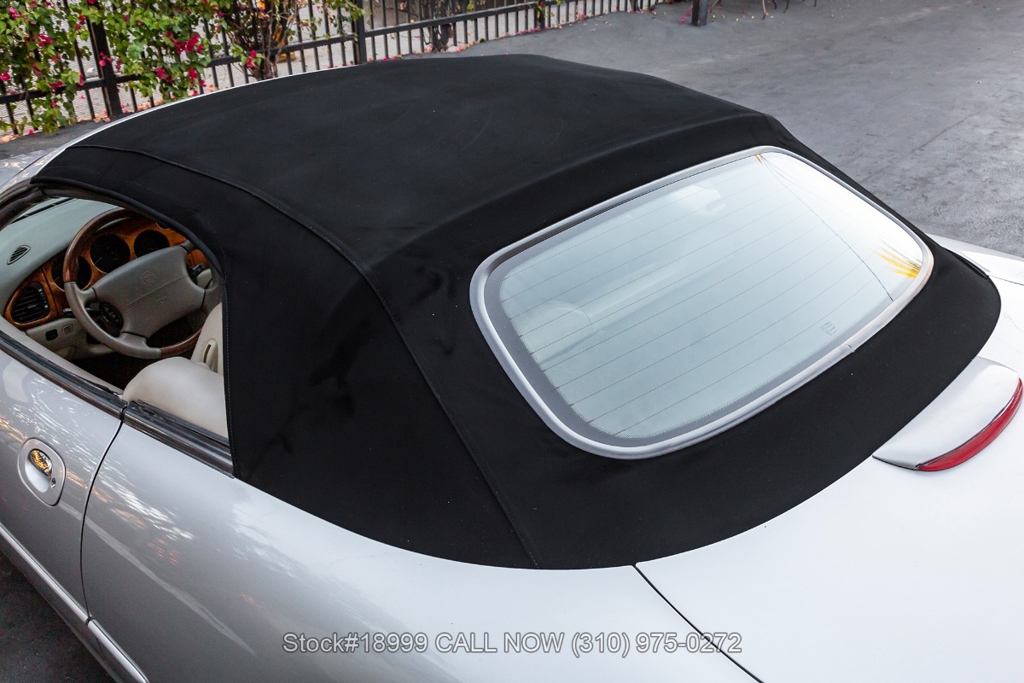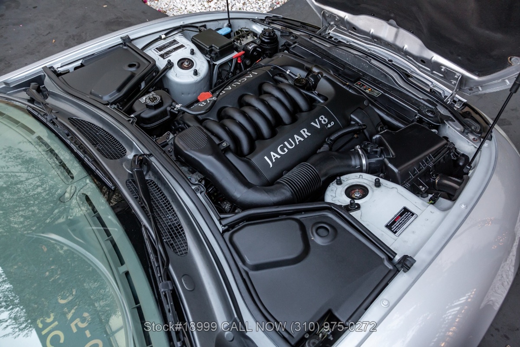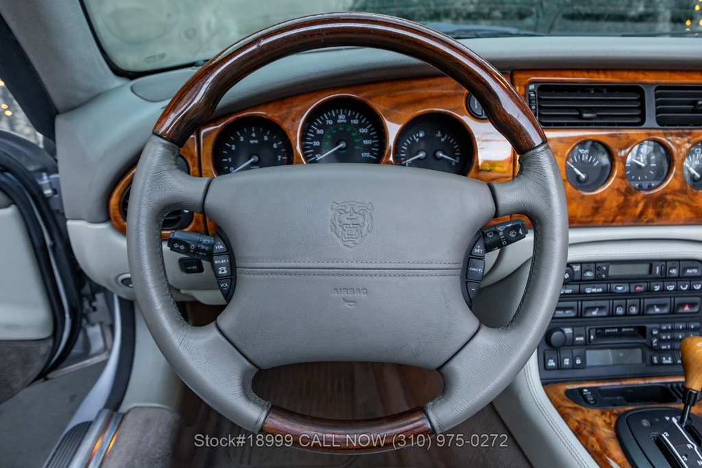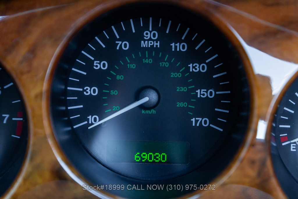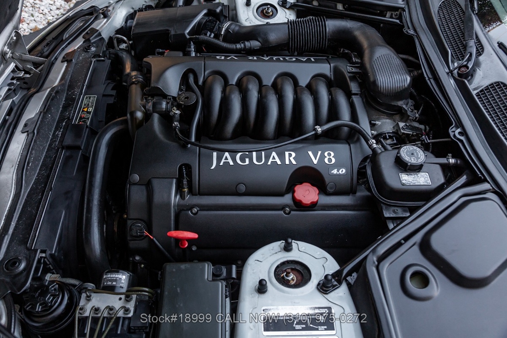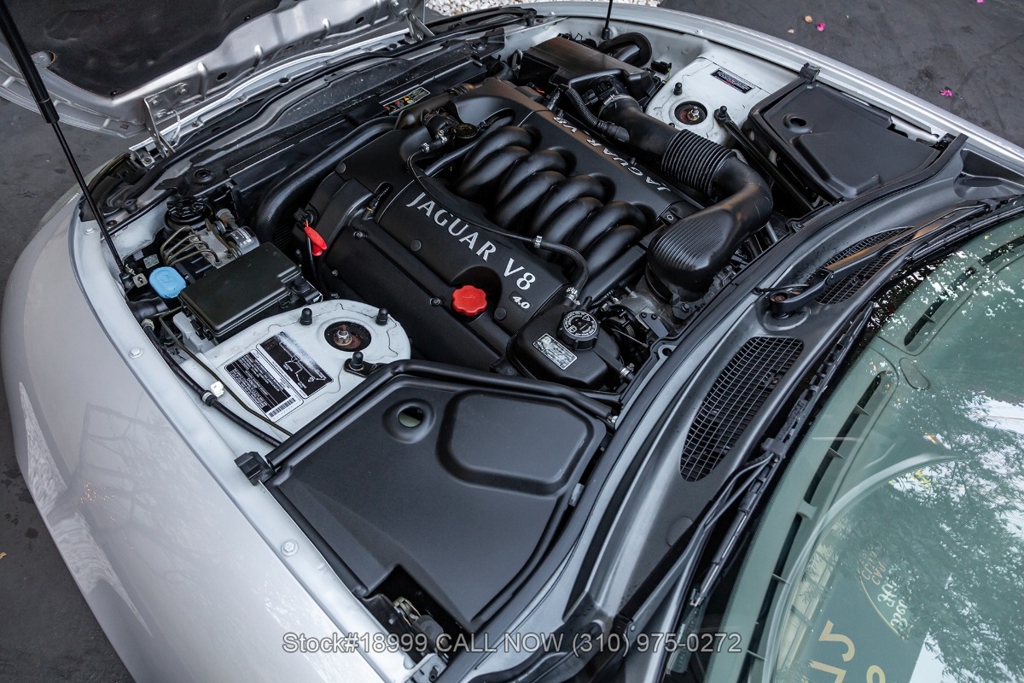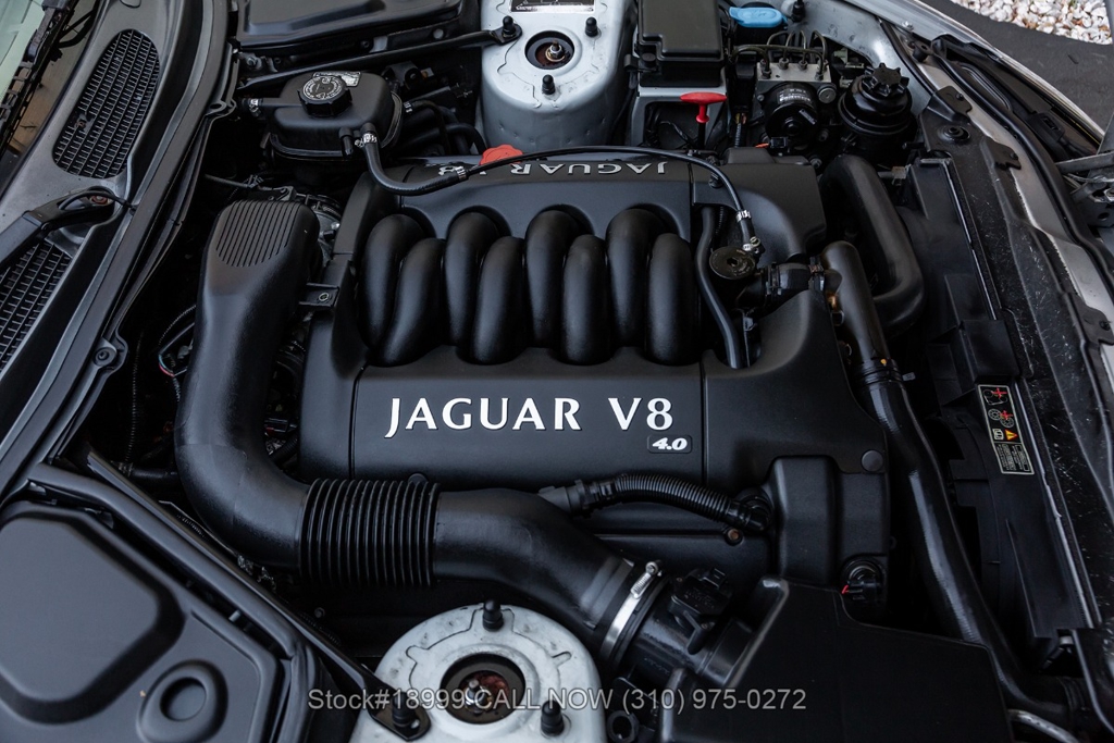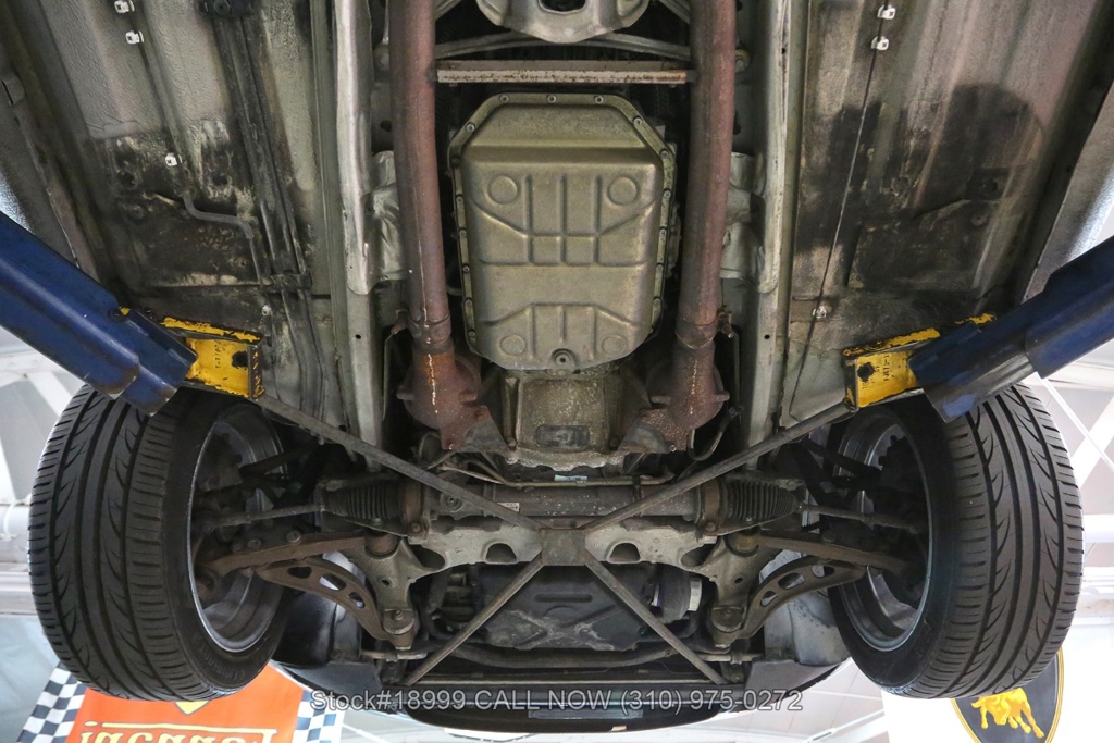 This California car is equipped with an automatic transmission, 4.0-liter V8 engine, four-wheel disc brakes, power steering, dual exhaust outlets, black convertible soft top, boot cover, side marker lights, courtesy lights, Lionhart tires, 18-inch alloy wheels, jack, and a spare tire fitted in the trunk.