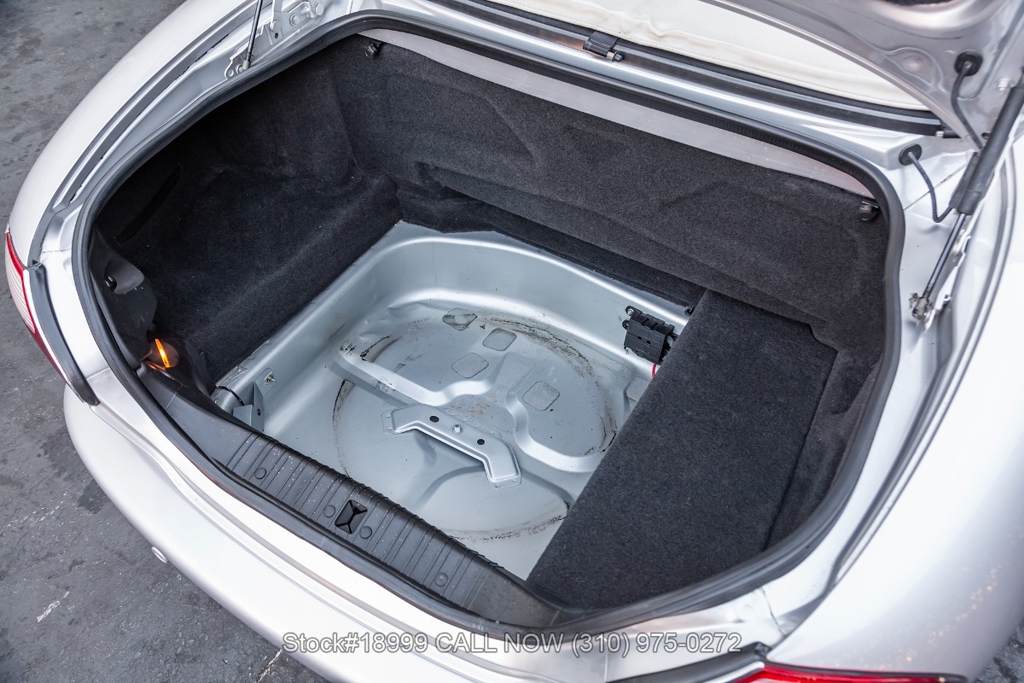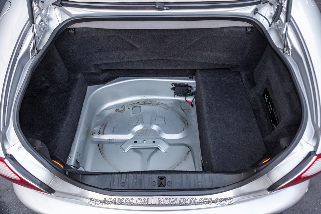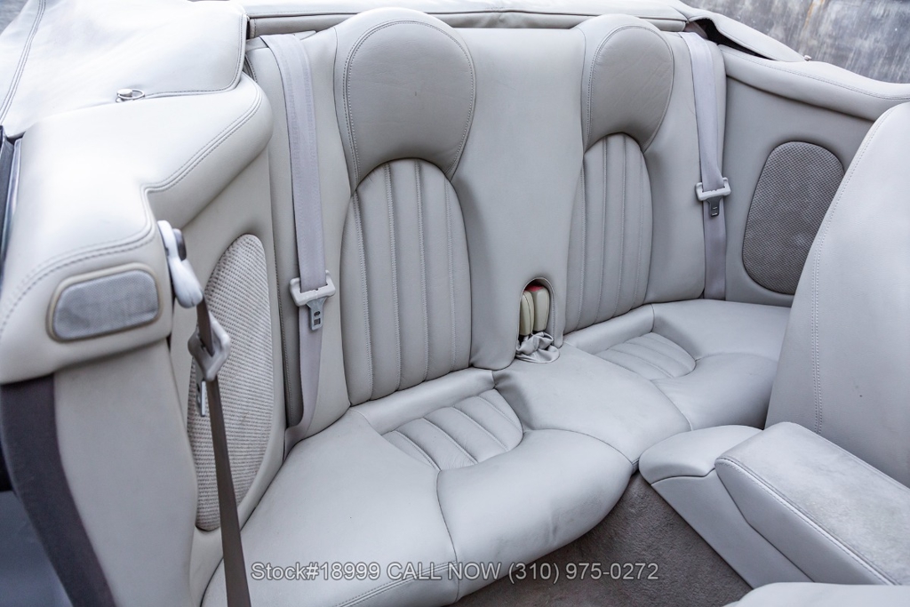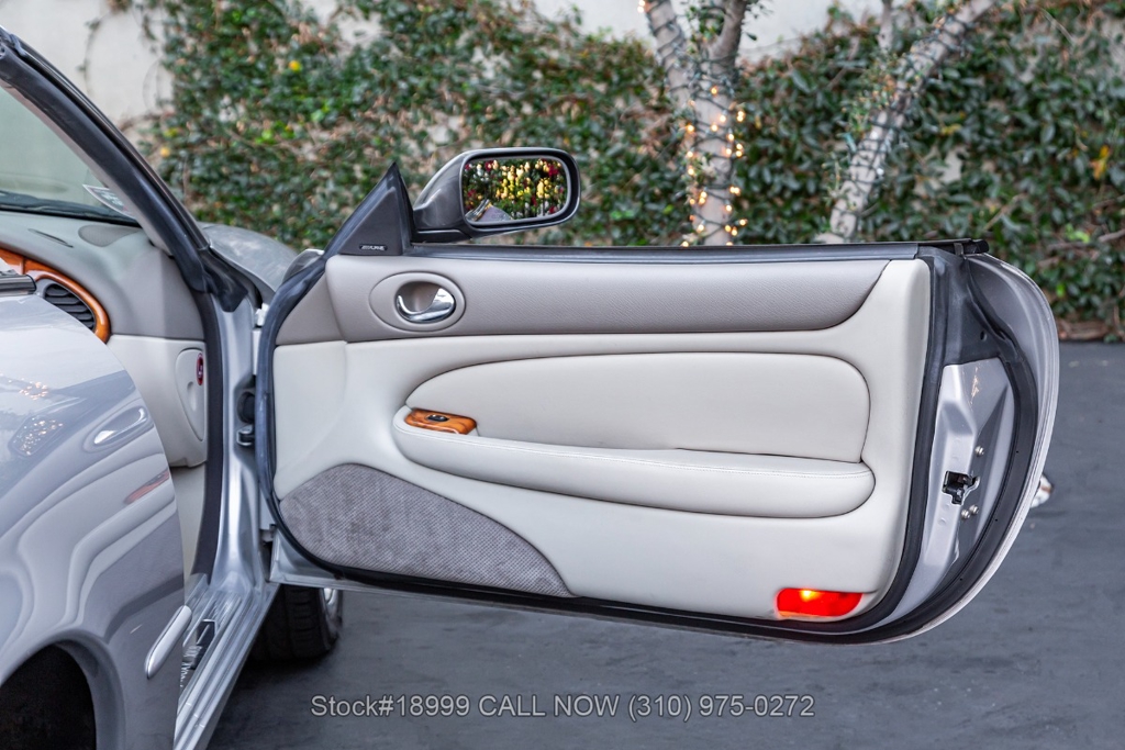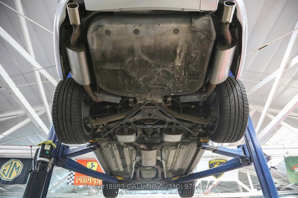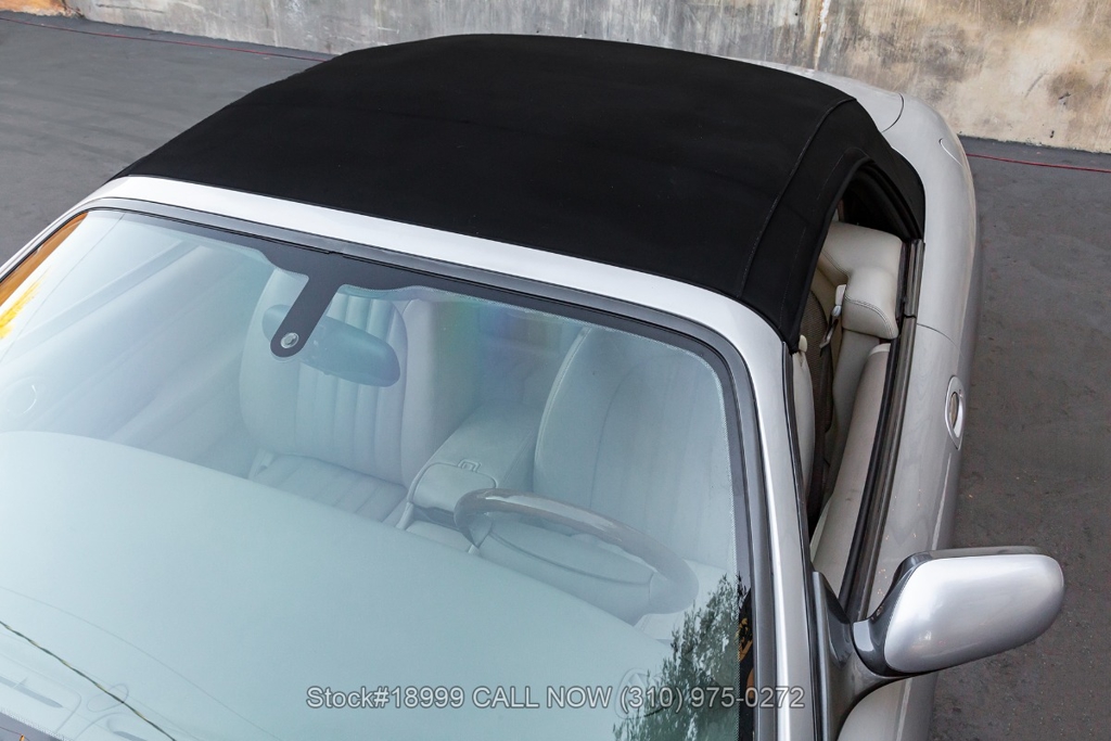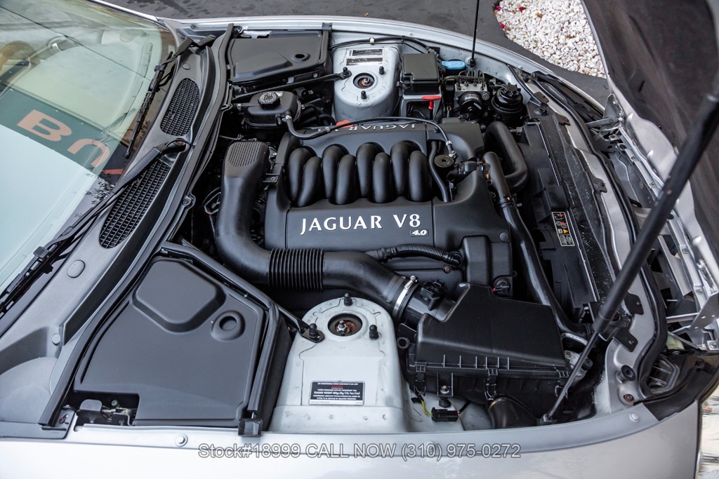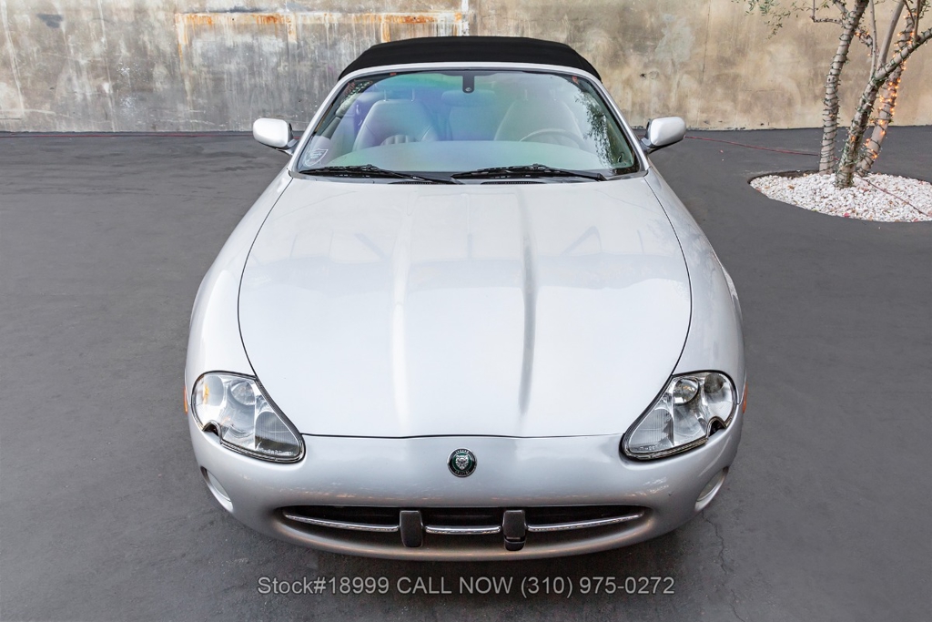 This California car is equipped with an automatic transmission, 4.0-liter V8 engine, four-wheel disc brakes, power steering, dual exhaust outlets, black convertible soft top, boot cover, side marker lights, courtesy lights, Lionhart tires, 18-inch alloy wheels, jack, and a spare tire fitted in the trunk.