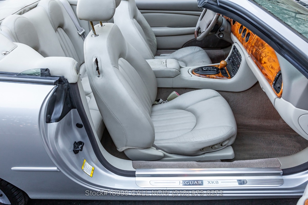 Presenting this 2002 Jaguar XK8 Convertible featured with 69,030 miles on the odometer. Finished in its factory color scheme of Platinum Metallic (MDZ) gracefully complemented with an Oatmeal (AGD) interior and accented by Burlwood veneers.