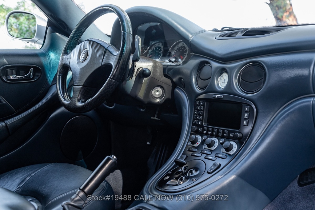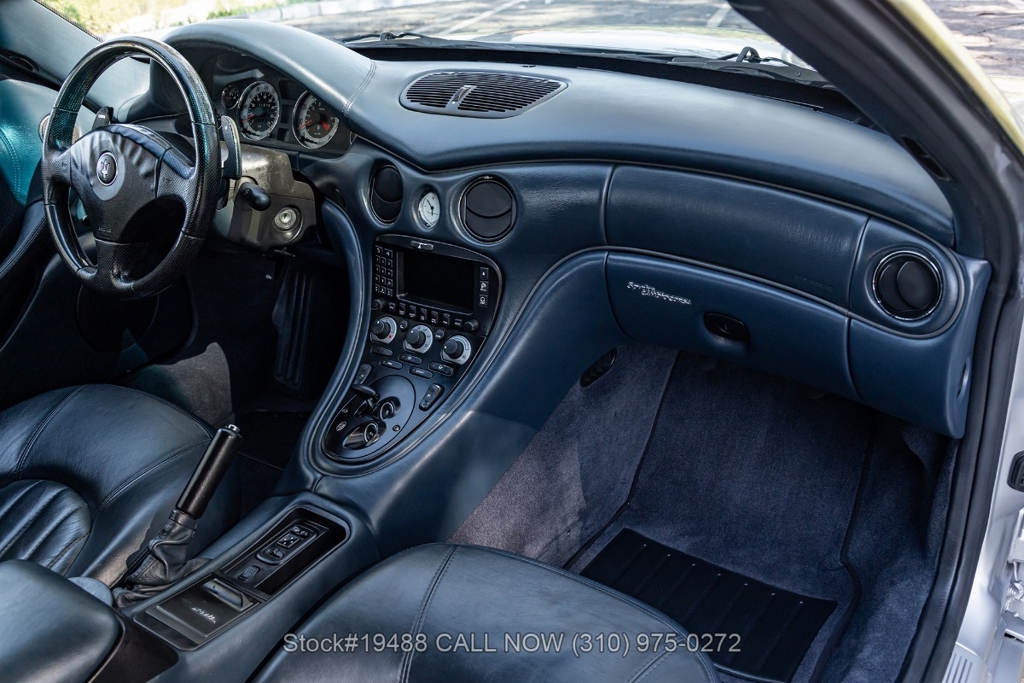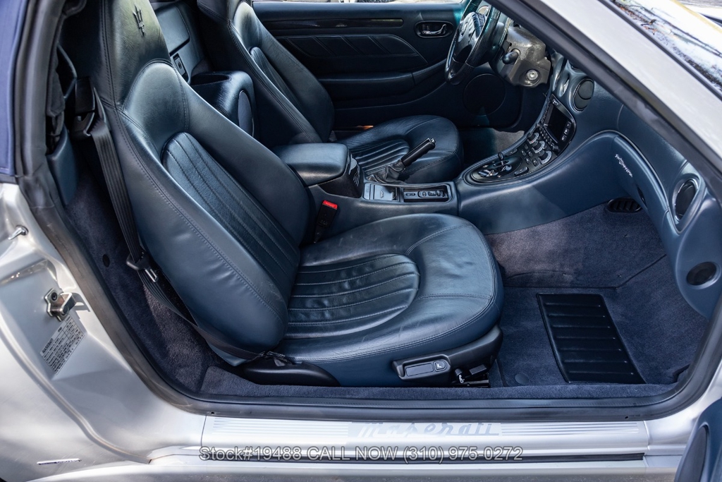 Introducing this 2002 Maserati Spyder Cambiocorsa with just 15,785 miles on the odometer. Finished in its classic Grigio Touring exterior over a Blu interior, paired with a matching Dark Blue canvas soft top. The car presents well and retains a classic look that suits its design. This example is equipped with the optional carbon fiber trim package on the steering wheel and door inserts, adding a subtle performance touch to the cabin.
