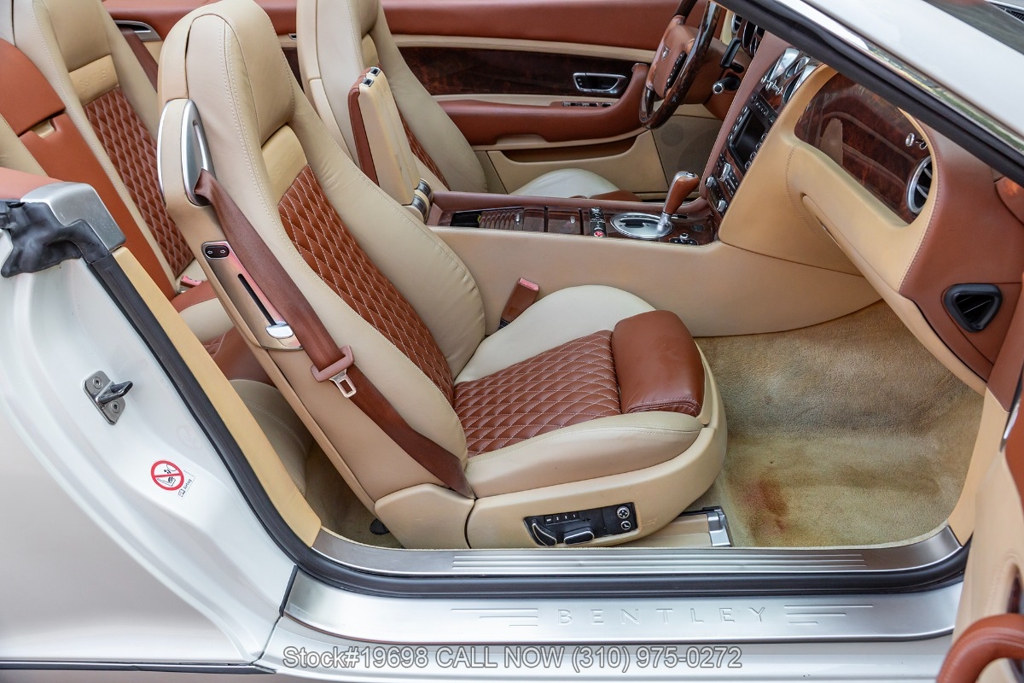 Introducing this 2007 Bentley Continental GTC Convertible, showing 51,519 miles on the odometer. Finished in pearl white over a saddle and magnolia interior with burr walnut trim, this example presents a well-balanced combination of classic color and traditional craftsmanship. The power-operated soft top offers the flexibility of open-air driving while maintaining a clean, refined profile when raised.