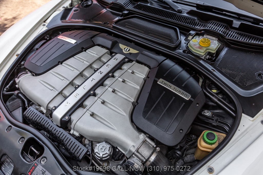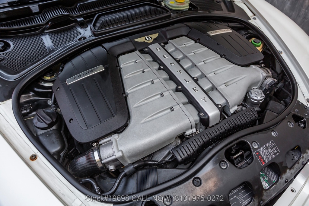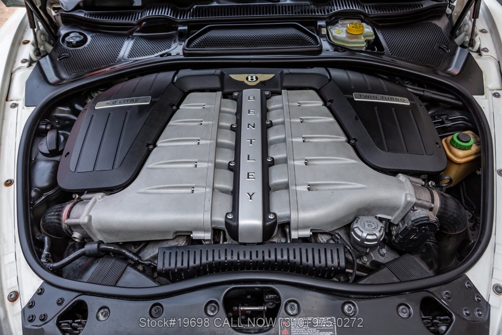 Under the hood is a 6.0-liter W12 twin-turbocharged engine producing 552 horsepower, paired with a 6-speed automatic transmission. Power is delivered through an all-wheel-drive system, providing stable performance across varying driving conditions. The vehicle is further equipped with four-wheel disc brakes, dual exhaust outlets, Bentley-branded brake calipers, and steering wheel-mounted shift controls. It rides on 19-inch 5-spoke alloy wheels with Bentley B center caps wrapped in Pirelli P Zero tires.