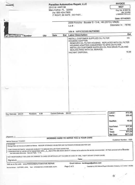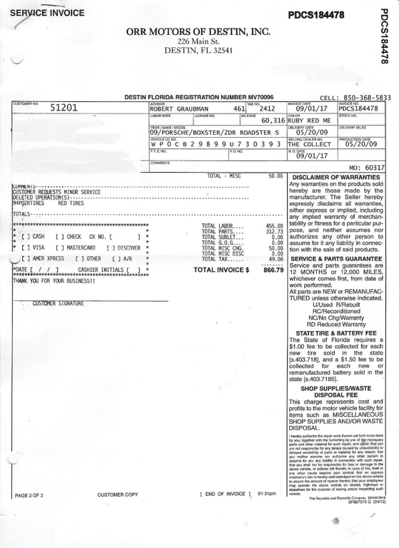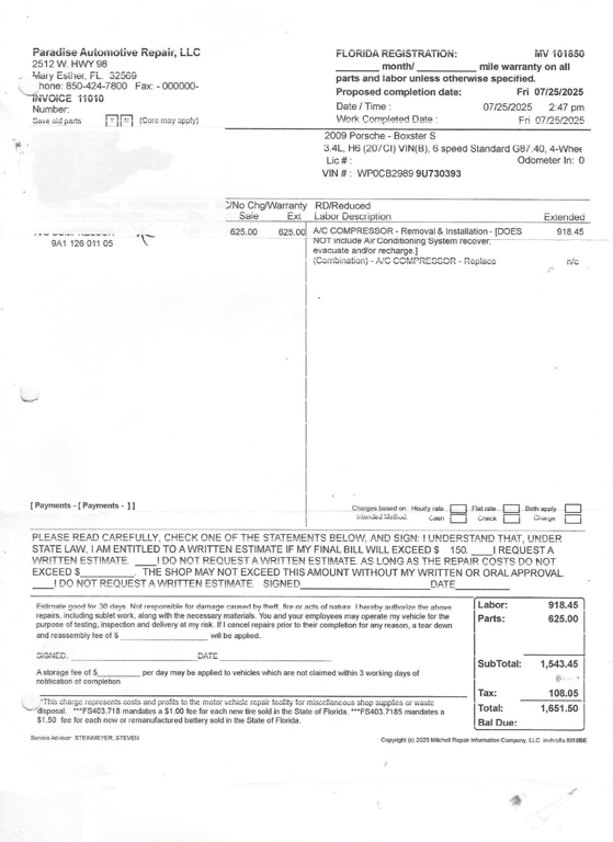 - $14,174.12 in Service Receipt Copies (2010-2025)