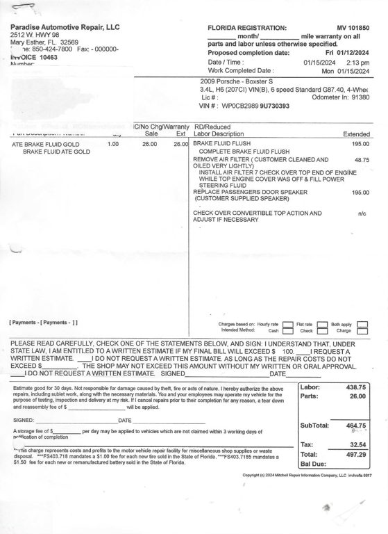 The vehicle comes complete with its owner's manual, maintenance booklet, and $14,174.12 in service receipt copies (2010-2015), providing confidence in its well-maintained history. This Boxster S has clearly been cared for, making it a standout choice for any enthusiast seeking a classic German sports car that delivers performance, style, and reliability.