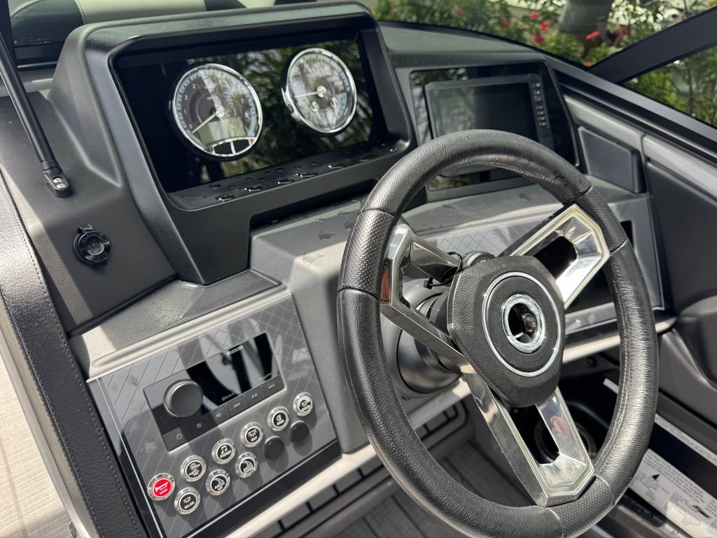 Powered for excitement and built with Avalon’s signature Waveglider triple 27? pontoon package, the Catalina Platinum delivers an exceptionally smooth and agile ride—even at high speeds. Premium touches like the high-back reclining helm chair, RGB interior lighting, touchscreen controls, and Bluetooth Fusion stereo system elevate every outing to first-class.