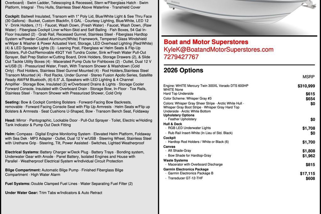 Engine: WHITE Mercury Twin 300XL Verado DTS 600HP