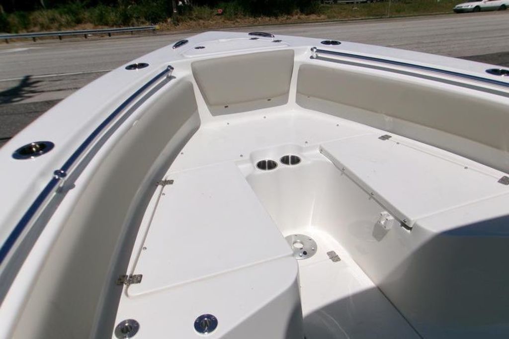 Ten (10) Year Hull Warranty Prem Independent Flip bolster LeanPost w/ Cooler Console seat w/ cushion & backrest Full width bench seat w/ removeable bottom cushion Stainless Steel Steering Wheel Sea Star Hydraulic Tilt Steering No Wood-No Rot Construction Self-Bailing Cockpit Centered Aerated Live well Molded In Fiberglass Swim Platform w/ Ladder Molded Anchor Locker w/Anchor Compass Bilge Pump w/Auto Float Switch LED Livewell Lights Closed Cell Positive Foam Floatation Console Footrest / Storage Box High Pressure Wash Down Bow Cushions, Bow Backrests, Bow Bolsters *Convenience Motor Package Prices Include Stainless Steel Propeller Recessed Low Profile Bow Rail Deluxe Console:Windshield, SS Grab Rail w/ Plenty of flush mount room Horn-electric Spacious console ideal for Head w/ light Courtesy Lights Power Outlet Plug on Dash 4 Stainless-Steel Rod Holders w/ Drain Gunwale Rod Storage for 8' Rods Foam Injected Fiberglass Stringer System Molded Non-skid Inner Liner Built-In Fuel Tank Folding Stern Light Cockpit Bolsters 12" Trim tabs w/ indicators Black Rubber Rub Rail Macerated Fish Box forward Built-in "easy access" cooler box aft Dual Battery Switch Pull-up fwd cleat in bow Trolling Motor Plug Cup holders forward at bow seating Battery Switch Box Upgraded Bow Eye **New Standard Features -Dimensions Length 23'9" Beam 8'6" Transom 25" Approx. Weight Estimated 2700lbs Dead Rise 19/ 24° Draft 14" -Capacities Fuel 100 Gals Rec. HP 200-250 HP Persons 8 Maximum HP 300 HP - No V-8's Boat and Motor Superstores of Palm Bay 4350 Dixie Hwy NE Palm Bay, FL 32905 FUTURE MODEL YEAR NOTE: !!!!!! Model Year 2026 pricing has not yet been released. Pricing on these orders are based on 2025 pricing and options, which will change for the 2026 Model Year !!!!!! $0.00 Engines (Included in Product Price) Yamaha F300XSB2 (DEC) (DES) White $101,680.00 Motor / Pre-Rig Configuration Yamaha Single XS EX Integrated Steering w CL5 Gauge - Garmin Ready $5,200.00 Hull Color Sea Foam Green $1,485.00 Color Scheme Full Hull Color $0