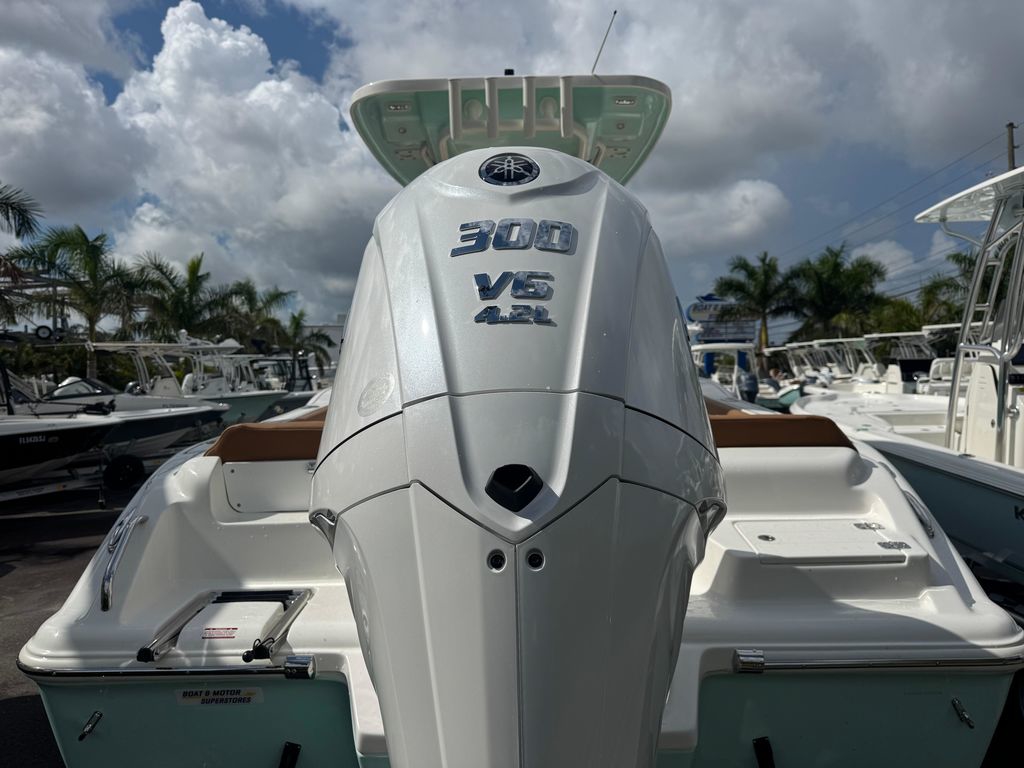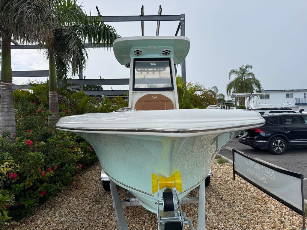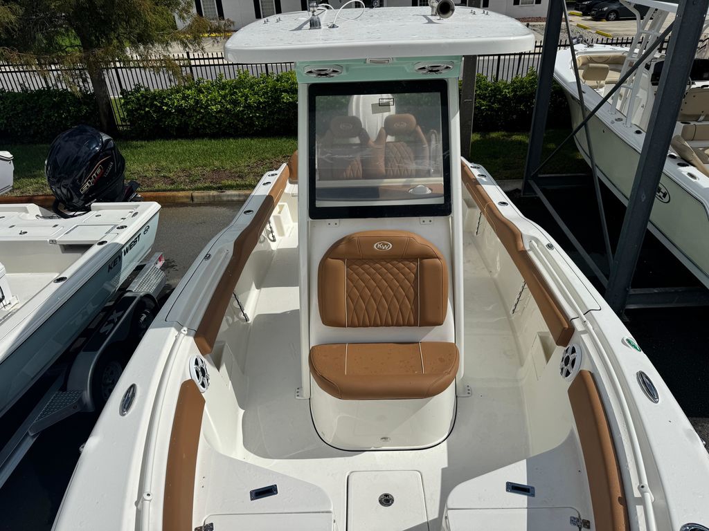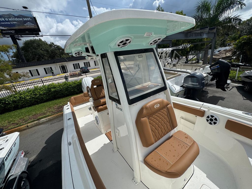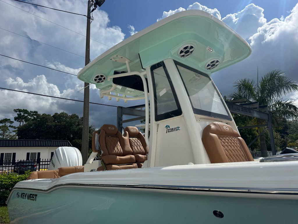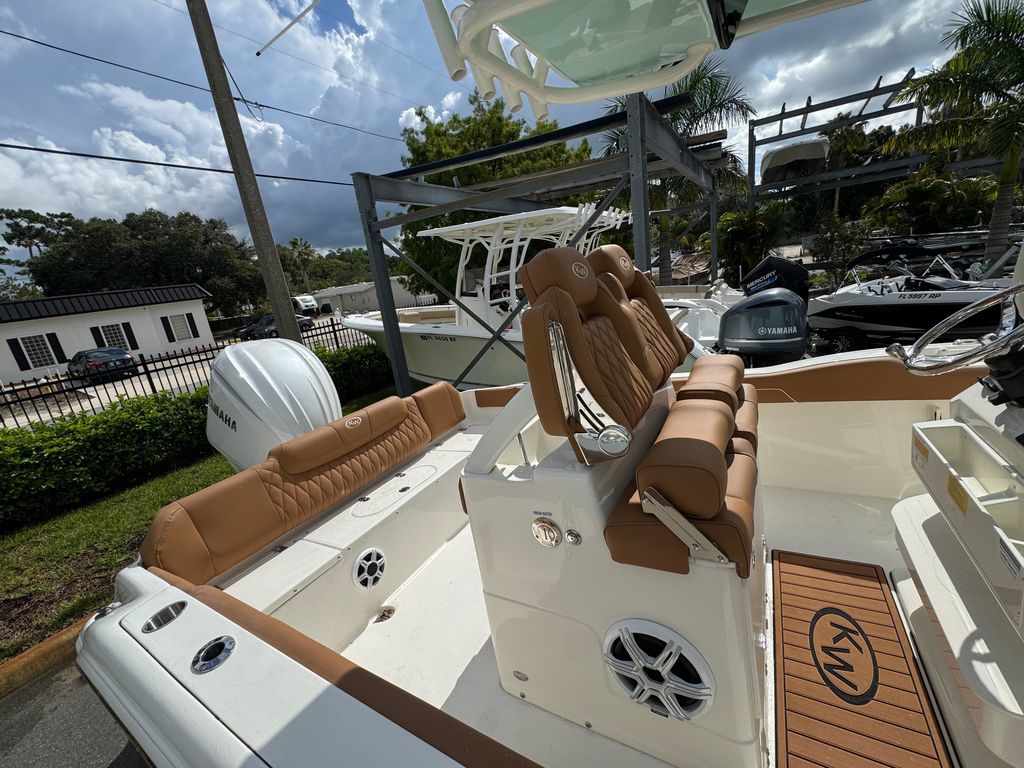 It includes a new sleek hardtop frame with an integrated windshield. Other upgrades include molded-in speaker pods, digital switching, a wireless phone charger, and an improved stereo with RGB lighting. Comfort is boosted with deluxe upholstery, a dual bucket seat leaning post, and a freshwater system. Additional features like a sandbar package, stainless steel rub rails, and the Seakeeper Ride System enhance convenience and usability.