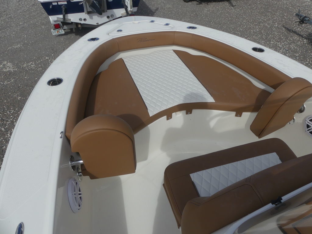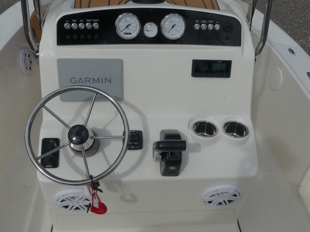 The Islander 180 is the perfect blend of compact performance and multifunctional design, making it an excellent choice for families and anglers alike. Measuring 17 feet, 10 inches, it features a 12-gallon aerated live well with a sea chest system to keep bait lively and ready. Stainless steel rod holders, under-gunnel rod storage, and a bow casting deck make it a capable fishing platform for inshore adventures.