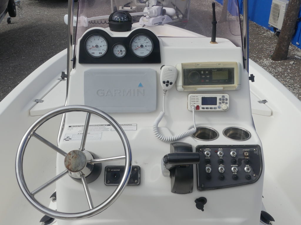 This beautiful 2019 NauticStar 2140 Shallow Bay features many things, including plenty of storage throughout the boat to safely store your gear out of the weather and elements, a Minn Kota i-Pilot trolling motor, and a forward livewell just in front of the console which also doubles as a very comfortable seat. It includes a Fusion stereo with two speakers on each side of the console, a Garmin chartplotter, a VHF radio for communicating with others on those fishing adventures, analog gauges, and two jump seats built into the back deck that fold down to turn the back deck into the ultimate fishing deck, along with a rear livewell for easy access to bait. This 2019 NauticStar 2140 Shallow Bay drafts 12–14 inches and is powered by a Yamaha 150 with only 200 hours on it.