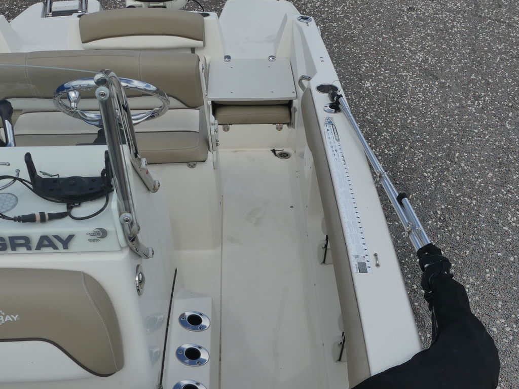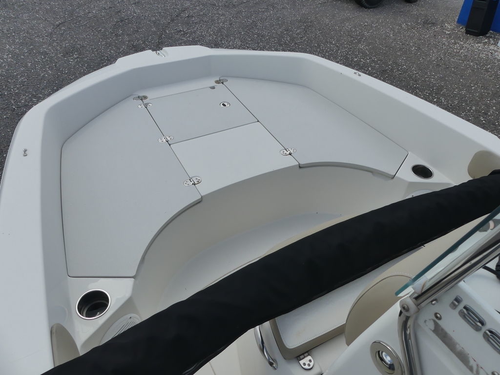 For the anglers, a low profile design makes it easy to navigate in low clearance areas. a helm seat for two has an adjustable seat / leaning post for fishing, a clean dash design leaves room for a 10-inch fish finder / plotter, the main helm seat lifts to reveal a conveniently located 26-gallon live well, and the forward bench offers an 18-gallon cooler that can be upgraded to a live well. The walk-around access, combined with the large foredeck, makes it easy for anglers to quickly move around the boat. Additionally, two rear seats lift up for seating and quickly fold down for use as casting platforms. Fishing rods are easily accessible thanks to abundant rod storage on both sides of the boat.