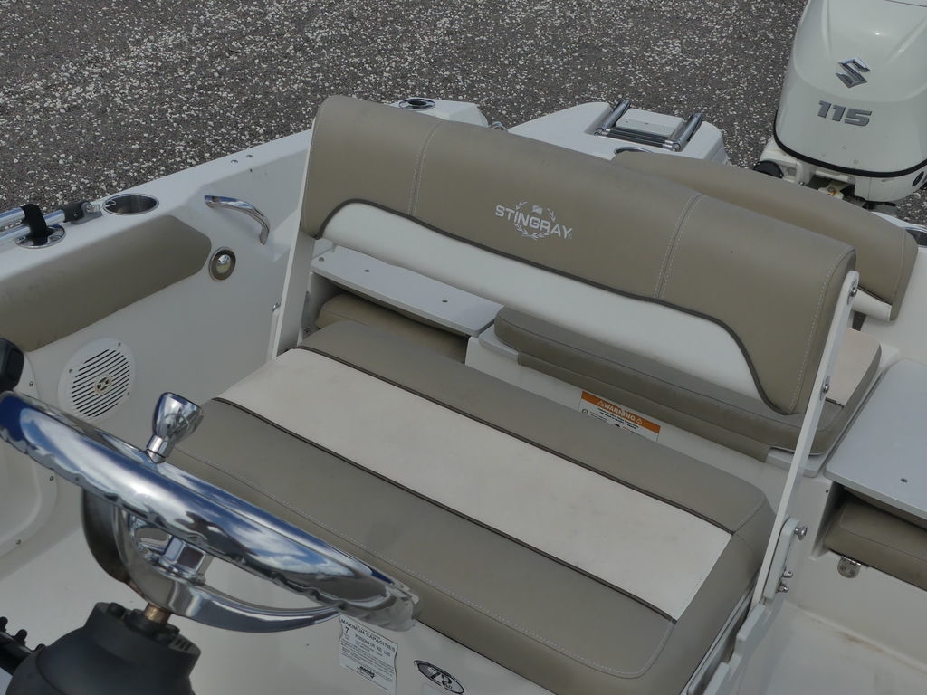 For a day out with the family, it offers lots of space for maneuvering about, plus seating for seven passengers. To ensure that none of the deck area is cluttered when headed out for a day on the water, STINGRAY designers effectively made use of all the space on board to incorporate lots of storage areas around the boat. The two rear flip-down seats make it easy for your passengers to enter and exit the boat from either port or starboard.