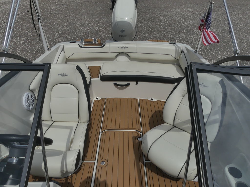 Do you love the open layout you get from a traditional deck boat but miss the full windshield of a standard bowrider? With the 191DC, you get the best of both. It has all the interior room and storage space of our very popular 182SC Deck Boat, but incorporates a full windshield to shield your passengers from the wind. Like other STINGRAY models, the 191DC features deep cockpit and bow areas for extra safety and security when underway. STINGRAY deck boats feature outboard power for ease of maintenance and large swim pods flank each side of the engine to make boarding a breeze. Contact your nearest STINGRAY dealer to schedule a test ride so you can experience the 191DC Deck Boat for yourself.