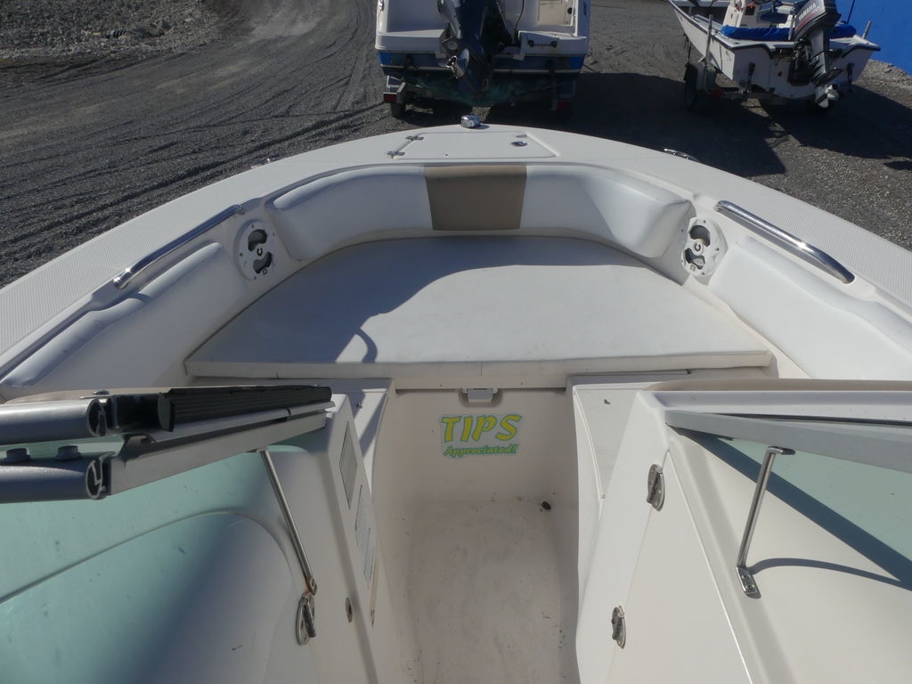 The amazing R207 invites you to double your pleasure and double your fun on boat that showcases everything that's right about owning a dual console outboard. Equal parts fishing machine and multi-purpose family sport boat, the R207 with F115 Yamaha power might be the best value in Robalo's 2014 fleet. An aluminum tandem axle trailer is included in the No Haggle, Reel Deal price. In the cockpit, a lockable head compartment provides welcome privacy. Add an optional porta-pottie because overboard isn't always an option. On the water, an 18-degree variable deadrise Hydro Lift bottom is stable while trolling, balanced under shifting weight loads and efficient going back-and-forth from your favorite fishing spot. A ski tow bar is a must have option for wakeboarding and pulling tubes.