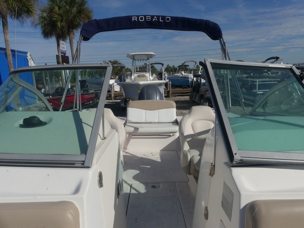 Features may include:Three Blade Aluminum Prop (115 and 150 Only)Shipping Cover12V DC Receptacle on DashElectric Water Resistant HornHydraulic Steering - Sea StarLighted High Speed CompassMolded Electronics Face with 12V Wiring Buss Behind ConsoleMolded-In Footrest at HelmNavigation LightsSound System - AM/FM Radio with Bluetooth/USB/Aux and Water Resistant Coaxial Speakers (4 Speakers)Stainless Steel Steering WheelTinned Copper Wiring with Waterproof ConnectorsYamaha Digital GaugesEnclosed Head Compartment with Lockable DoorFoam Backed Hullside MaterialIncandescent LightingMildew Resistant Acoustical LinerStorage Hanging Rod13 Gallon Livewell with L.E.D. Lighting and Blue Gelcoat Finish, Under aft seatAft Jump Seats, Folding with Backrest and Aluminum HardwareBow Cushions (Removable)Bow Walk-Thru DoorCockpit Coolers behind Helm Seats with DrainsCockpit Courtesy Lights, Blue LEDCustom Designed Ultra Comfort Helm SeatsDiamond Lustre Non-Skid SurfacesDirectional Aerator Head Unit with Adjustable Flow ValveEncapsulated Reserve FlotationFull Wrap Cockpit Coaming BolstersHorizontal Tubed Rod Storage for (4) Rods in the Coaming WallsMolded Gunnel InsertsPremium Vinyl Cockpit Upholstery with Nano-Block Technology™Stainless Steel Cockpit Grab RailsStainless Steel Cockpit Toe RailsStainless Steel Drink Holders (4)Storage - Under Bow Seating, Starboard Helm, Port and Starboard Helm Seats"Perma-Guard" Structural System10 Year Limited Hull WarrantyAnchor Rope and Chain Locker on BowBilge Pump with Automatic SwitchBilge Pump with Automatic SwitchFuel/Water Separator (Yamaha Engines only)Garboard DrainHydro Lift™ Multi Angle Hull DesignPremium Gel CoatPremium Hydropel Resin-Blister ResistantRaw Water Wash Down with Hose ConnectorSea Water Strainer SystemStainless Steel 6" Studded Cleats with Robalo Logo, Through Bolted with Backing PlatesStainless Steel Bow Grab RailsStainless Steel Flush Pull LatchesThree-Step Telescoping Boarding Ladder with HandleTransom Storage to Access Rigging Compartment