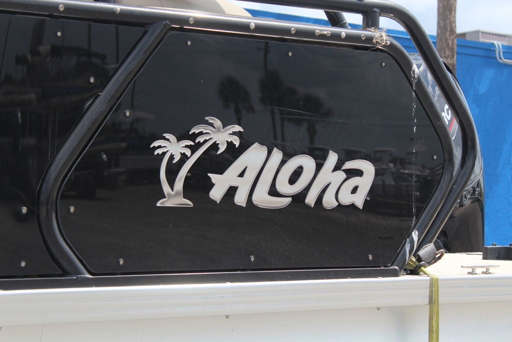 - Aluminum Tread Plate Headliner with LED Back Lit Aloha Logo on Sundeck Models