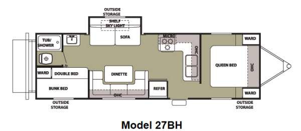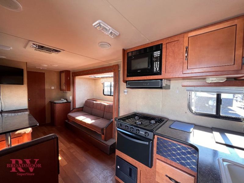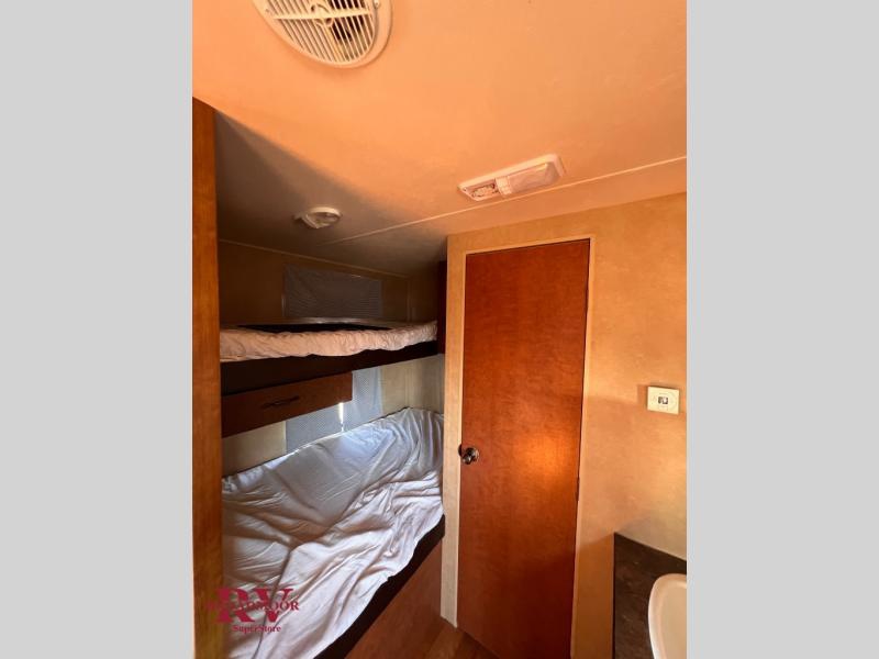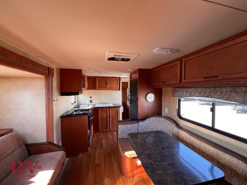 Single Slide Cherokee Grey Wolf Travel Trailer, Rear Tub/Shower, Toilet, Lav., Sofa Slide, 3-Burner Range, Microwave, Dbl. Kitchen Sink, Front Queen Bed, Dbl. Wardrobes, Refrigerator, U-Dinette, Double Bed w/Bunk Above, Wardrobe, Overhead Cabinets Throughout, Outside Storage & Much More.