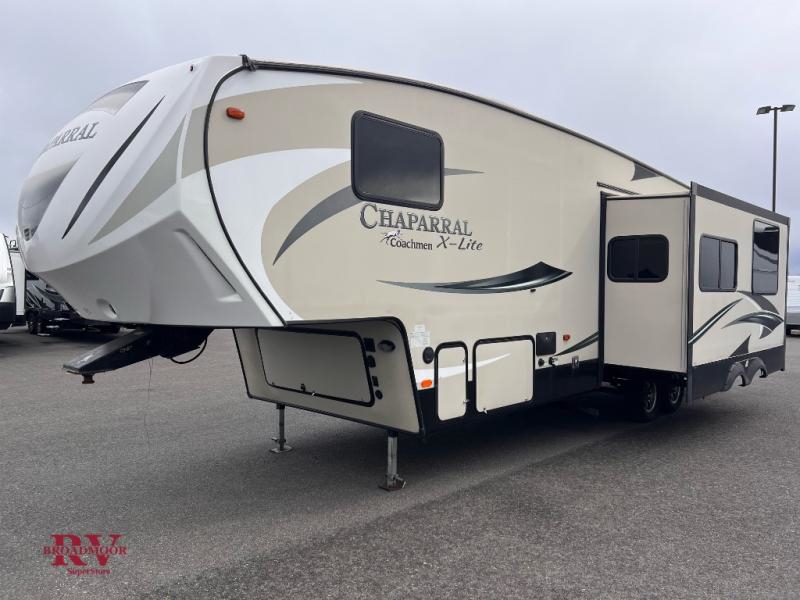 Camp comfortably in this Chaparral Lite fifth wheel 29BHS by Coachmen RV. With triple slides, and a bunkhouse for the kids, this unit features plenty of space and storage for everyone!