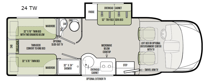 Tiffin Wayfarer class C diesel motorhome model 24 TW highlights:
