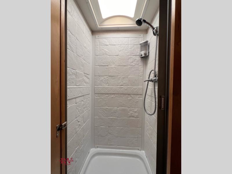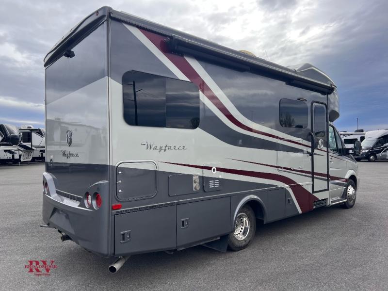 With any Tiffin Wayfarer class C diesel motorhome you will enjoy the luxurious Mercedes-Benz chassis at a price your family can afford. Inside each Wayfarer you will enjoy high-end finishes throughout, including hardwood cabinetry and premium-grade linoleum. Having the ability to make meals or heat up leftovers in a convection microwave anywhere you stop, plus having access to full bathroom and sleeping arrangements make being on the road that much easier. These models also include a 3.2 kw diesel generator, a 13.5k Coleman roof mounted AC, and a 30k BTU propane ducted furnace so you can camp during the spring or winter!