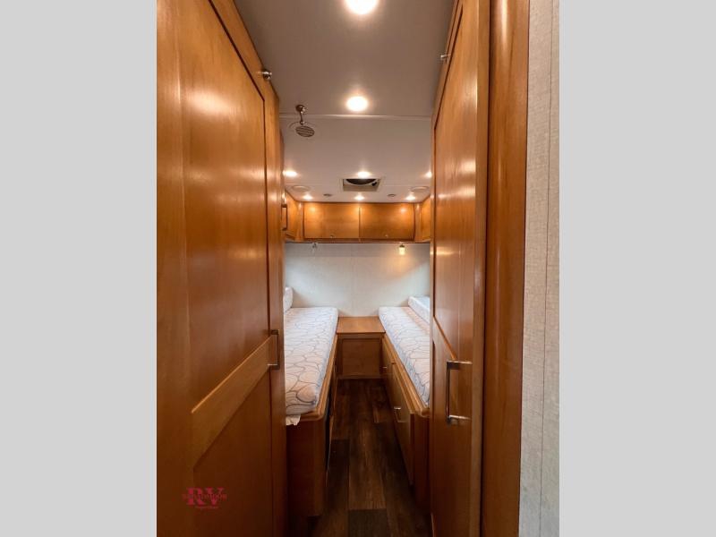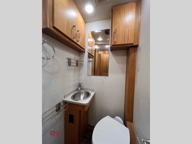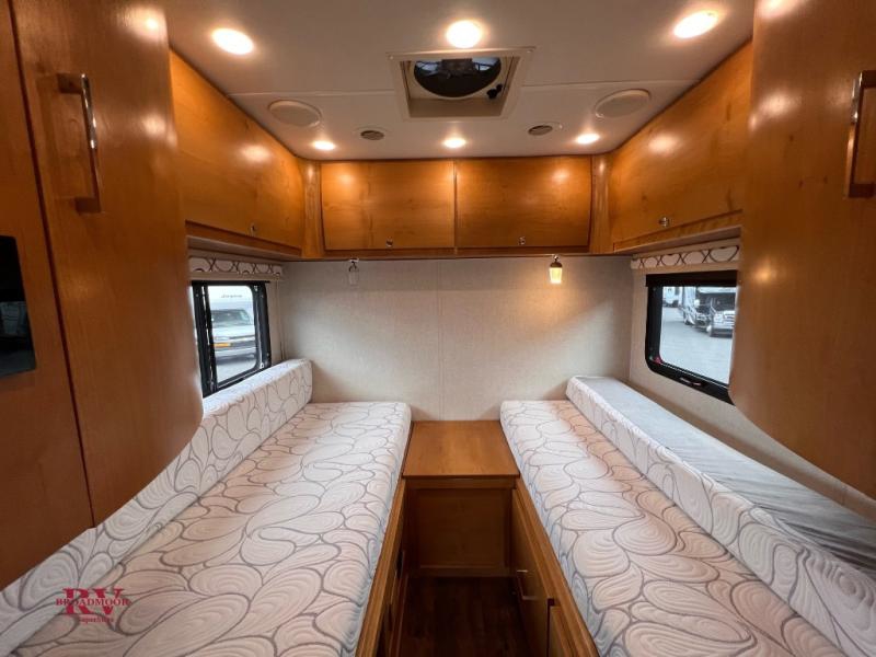 This Wayfarer 24 TW class C diesel motorhome provides access to the shower separately from the private toilet and vanity with sink which is quite convenient when you are in a hurry to head into town. The dual opposing twin beds convert to a king size bed if you need more sleeping space on any given night. The loft bed over the cab and sofa sleeper provide additional sleeping space for your kids or overnight guests. You will find four seatbelts, a spice rack and designer faucet in the kitchen, plus many more features. The 14' Carefree awning will provide an outdoor living space everyone can appreciate!