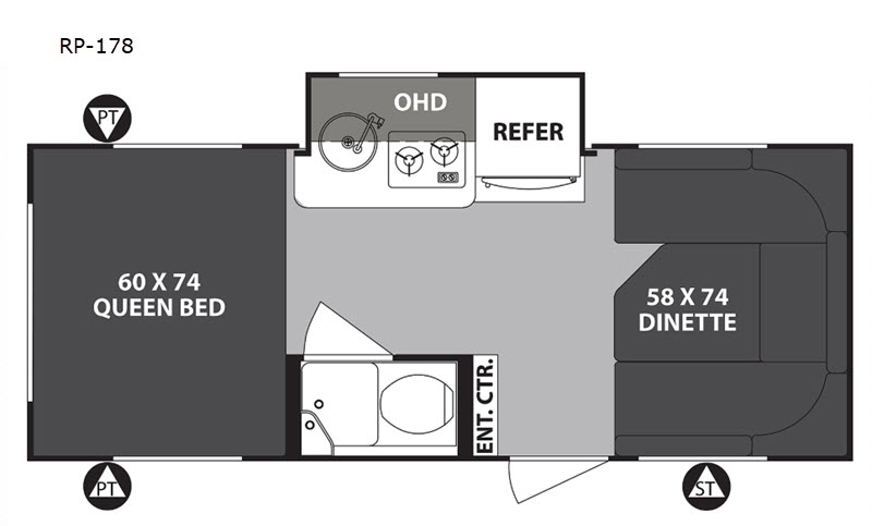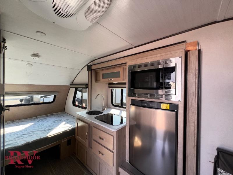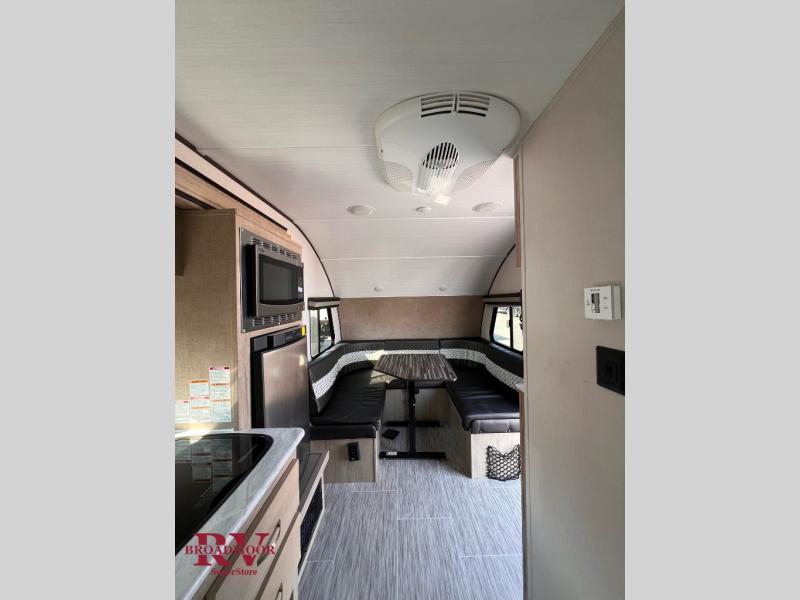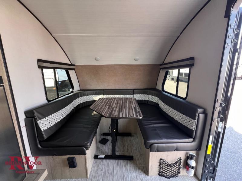 This R-Pod travel trailer by Forest River is a great camping unit for a family of four. You will enjoy the extra floor space thanks to the single slide. After you set up camp, then come enjoy the comforts throughout this model, including a refrigerator and a two-burner cooktop. You can eat your meals at the 58" x 74" U-shaped dinette, and if extra sleeping space is needed, then you can convert this area into a bed. In the back of this model is an RV queen bed for you to enjoy a great night's rest. An added feature that is handy is the wet bath, plus there is an exterior pass-through storage to keep your outdoor gear!