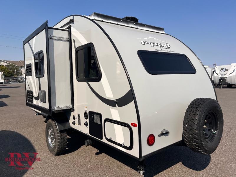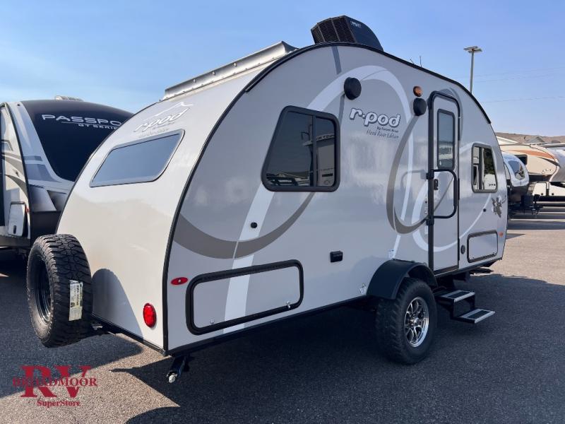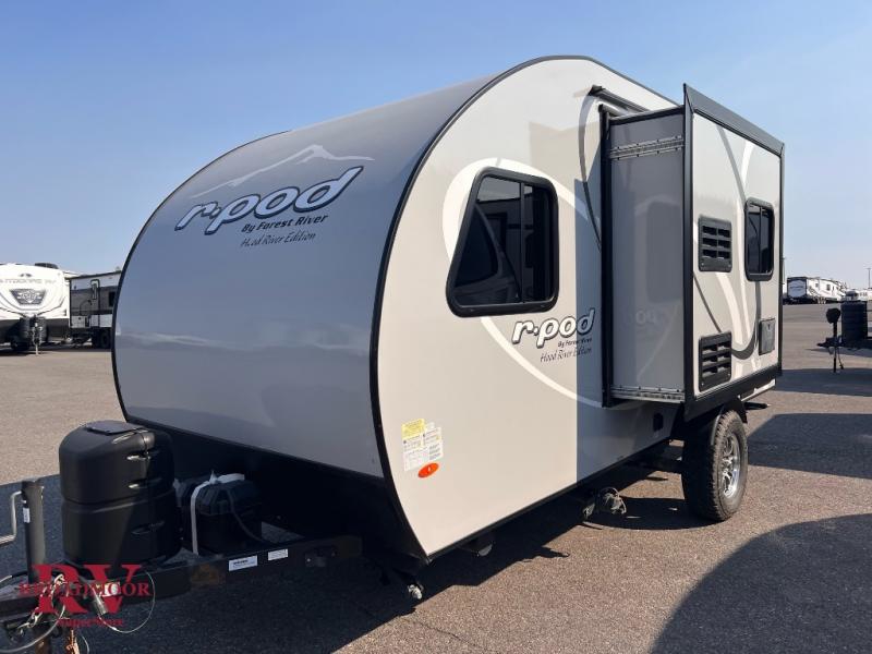 For a sturdy one-of-a-kind travel trailer, choose the R-Pod by Forest River. Along the exterior, you will find a powder-coated steel frame, custom tinted safety glass windows, and convenient magnet baggage-door catches. Inside of each model, you will enjoy Designer Carefree flooring, hardwood drawer fronts with full-extension ball bearing drawer glides, plus decorative window treatments to give you an at-home feel. With safety features like the breakaway switch, the LP, smoke, and CO detectors, plus a fire extinguisher, you can be sure that you will be safe for years to come. These units are ready to go when you are, so come select your R-Pod today!