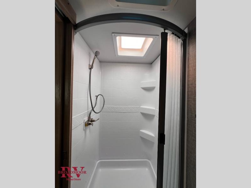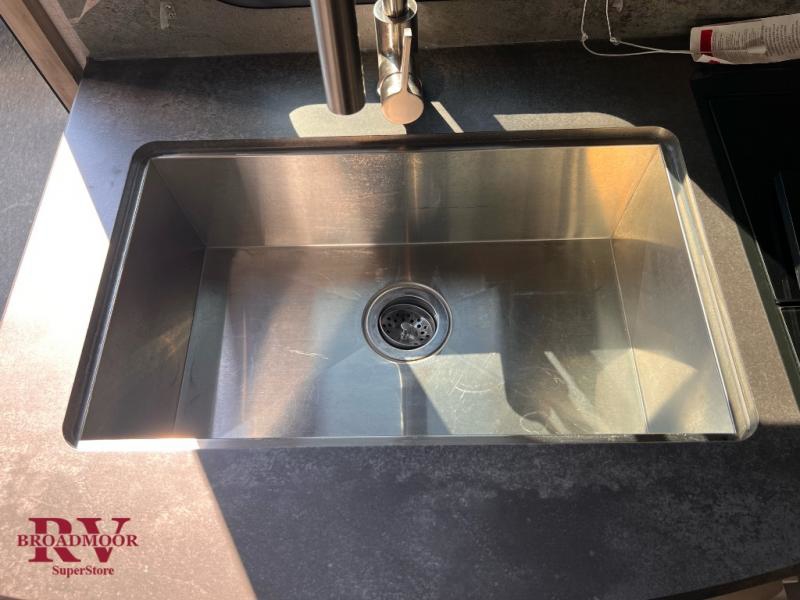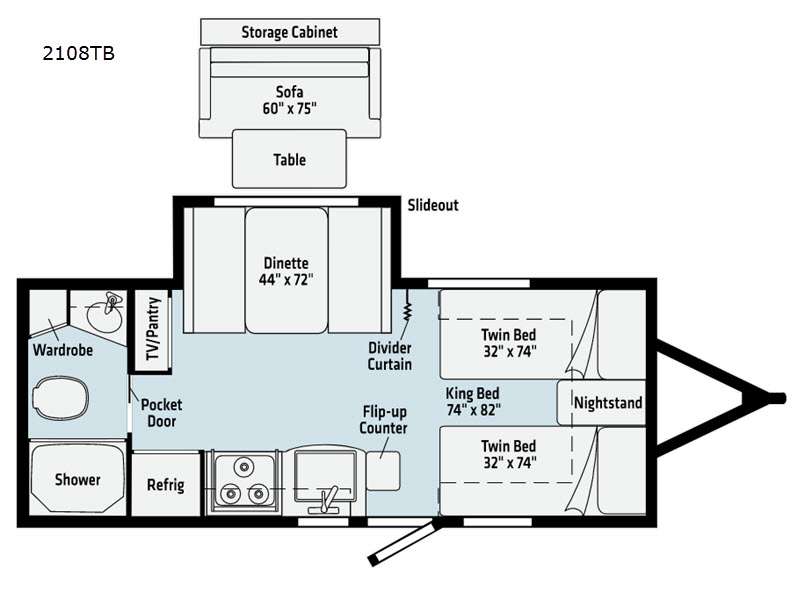 Come see just how accommodating this travel trailer can be! The two 32" x 74" twin beds up front have a nightstand in between them and a divider curtain to draw, plus they can convert into one 74" x 82" king bed. The 44" x 72" booth dinette slide can also convert into an extra sleeping space when you're not using it to eat your meals at or play games. Everyone can get squeaky clean in the full rear bathroom and the wardrobe is a convenient place to store your linens and extra clothes. Grab a snack from the kitchen pantry or pop a bag of popcorn in the microwave then watch a movie on the LED TV or head outdoors and relax underneath the power awning while your favorite tunes play through the patio speakers!