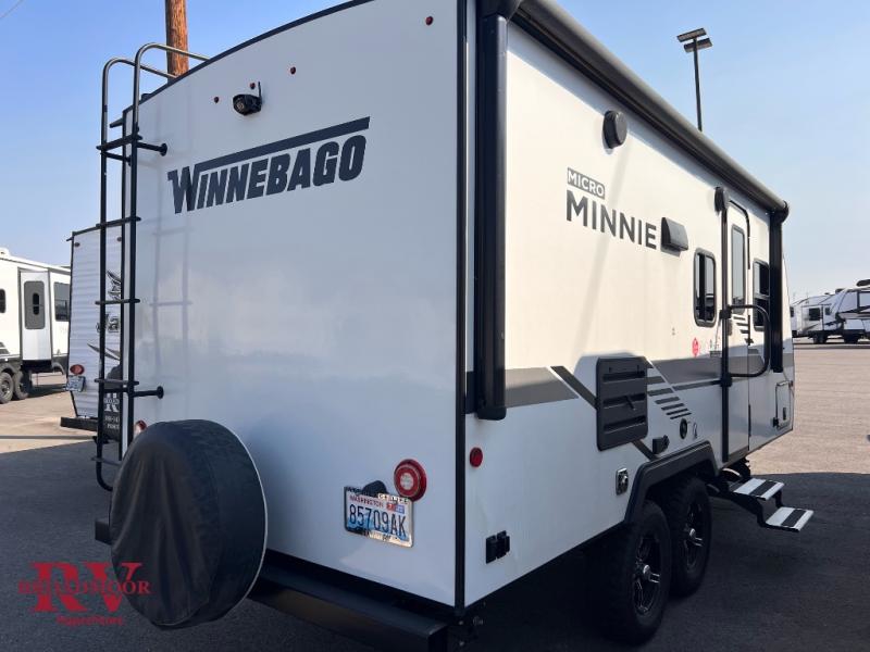 Start out on your boundless journey in one of these Winnebago Industries Towables Micro Minnie travel trailers! Towing is made simple with the 7' width to keep your Micro Minnie in your rear-view mirror and can turn at a snap. They don't lack in features although they are compact in size. The spacious galley with the sink, the refrigerator, the cooktop, and even a microwave allow you to cook without compromise. You will not only enjoy entertainment indoors with the LED TV, the AV system, the WiFi prep, and the wireless cell phone charger, but also outdoors with the patio speakers and the power awning with LED lighting. Each model comes with flexible exterior storage to make packing quick and easy. The extreme weather foil wrapping, the NXG engineered chassis, and the TPO roof ensures you will have years of fun with one of these!