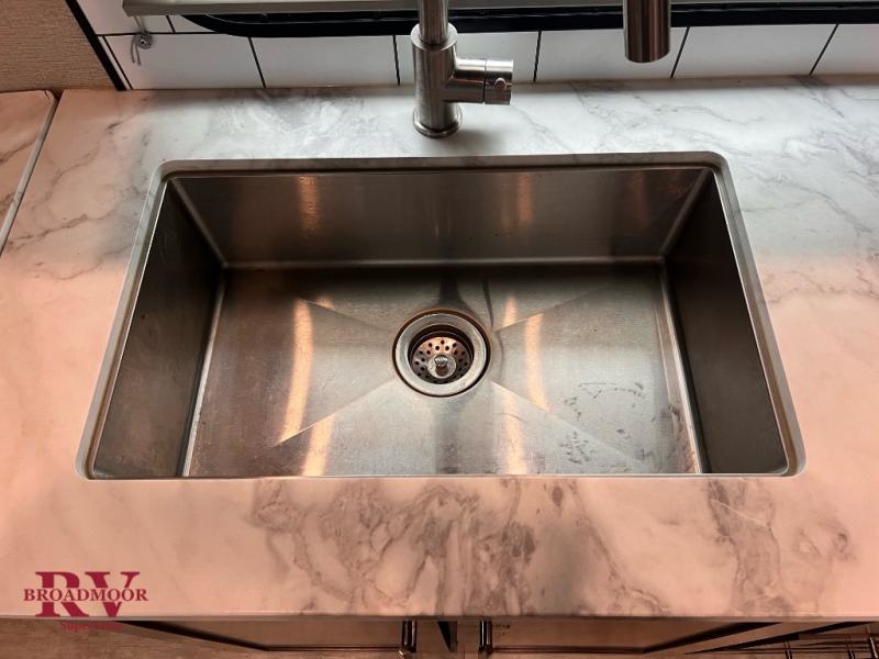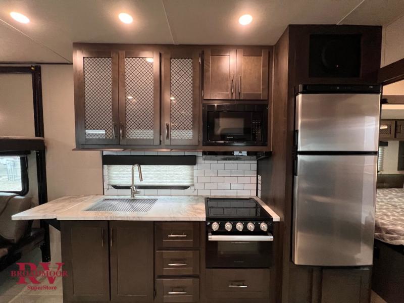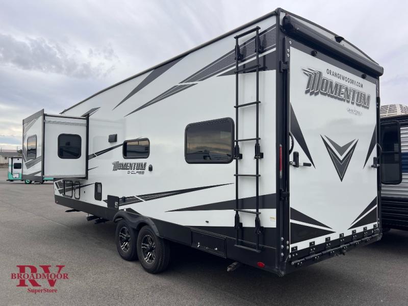 Are you looking for adventure and fun? The Momentum G-Class toy hauler by Grand Design will help you find it! You can explore during any season you choose with the Insulation Package that includes a heated and enclosed underbelly with suspended tanks, a high-capacity furnace, a moisture barrier floor enclosure, and cabinet-mounted heat ducts. Each model includes a 30-gallon fuel station with an interior and exterior gauge, a dovetail rear rend, and 2,500-LB tie-downs anchored into the chassis. Throughout the Momentum G-Class interior, you'll enjoy many comfortable features like large panoramic windows, a shower skylight, USB chargers in the bedroom, and residential cabinetry.