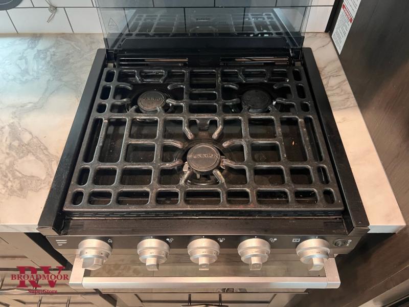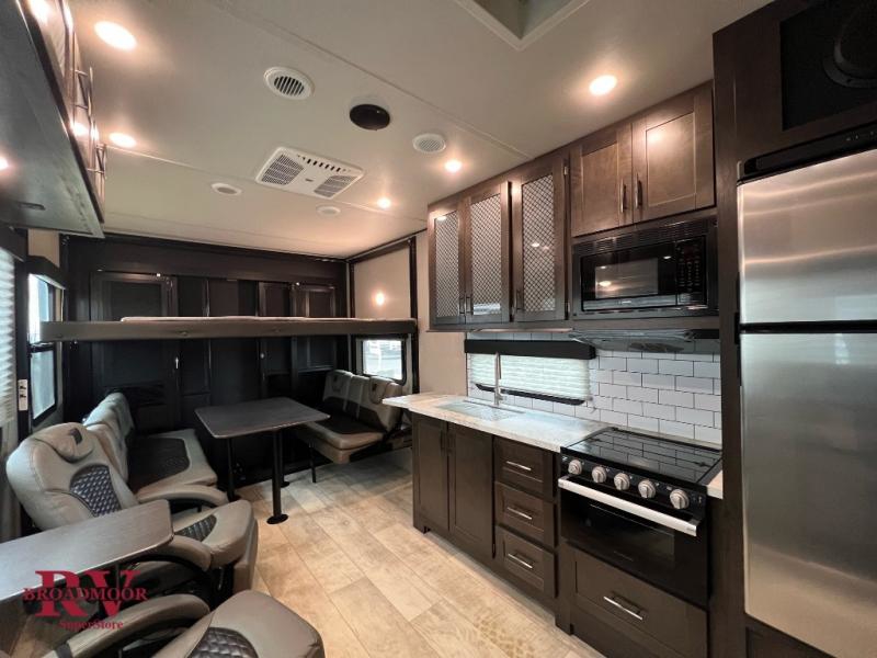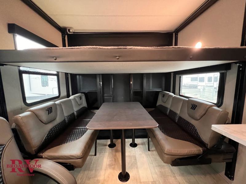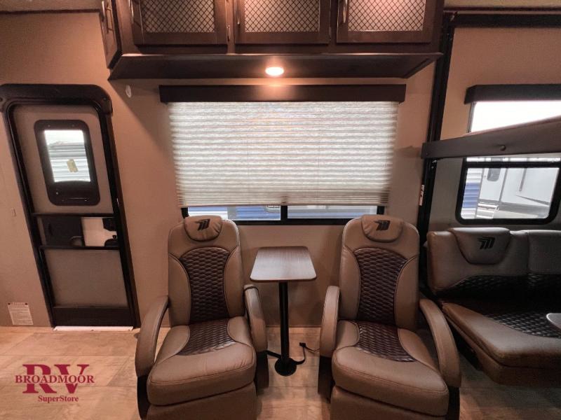You'll be a force to reckon with in this Momentum G-Class toy hauler! The master suite provides great convenience since it contains extra space from the king bed slide, and the private entrance into the dual-entry bathroom allows you to discreetly clean up each morning. For those who like to start their morning off right with a hearty breakfast, you'll be able to use the flip-up table in the kitchen to get all of your ingredients together. As soon as those smells start wafting throughout, anyone who was sleeping on the rollover sofas or top bed will immediately come join you. The USB charging outlets in between the Euro chairs will allow you to charge your phone while you relax, and the exterior storage will hold extra gear for beach day.