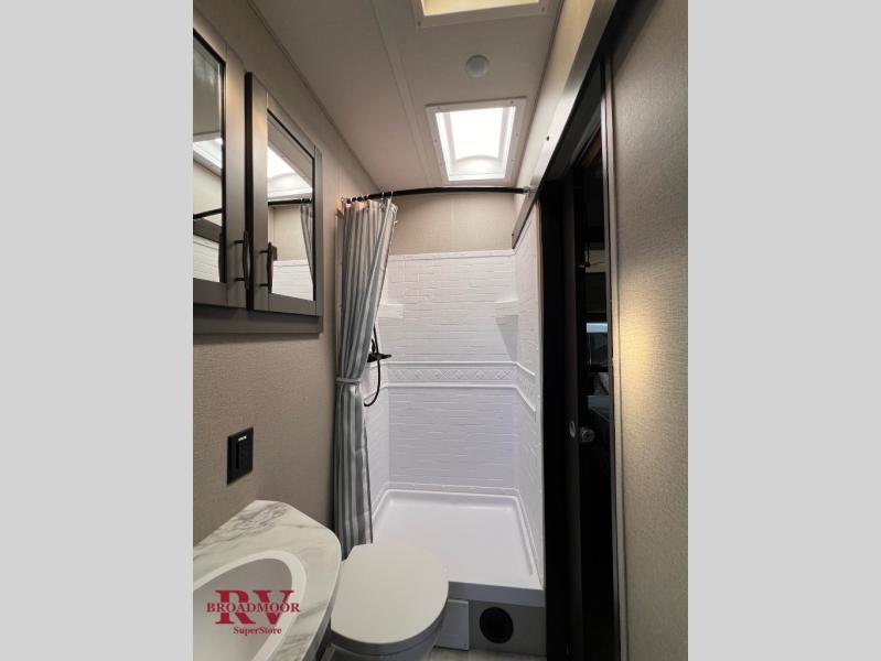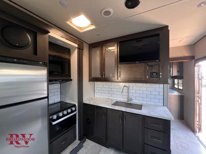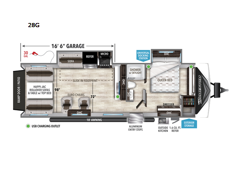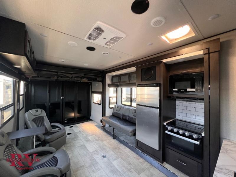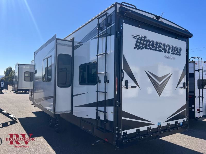 Are you looking for adventure and fun? The Momentum G-Class toy hauler by Grand Design will help you find it! You can explore during any season you choose with the Insulation Package that includes a heated and enclosed underbelly with suspended tanks, a high-capacity furnace, a moisture barrier floor enclosure, and cabinet-mounted heat ducts. Each model includes a 30-gallon fuel station with an interior and exterior gauge, a dovetail rear rend, and 2,500-LB tie-downs anchored into the chassis. Throughout the Momentum G-Class interior, you'll enjoy many comfortable features like large panoramic windows, a shower skylight, USB chargers in the bedroom, and residential cabinetry.