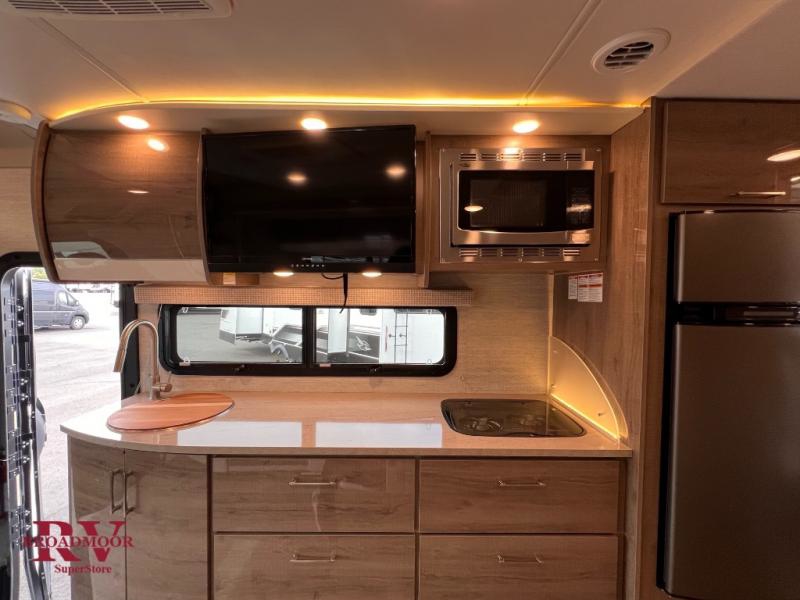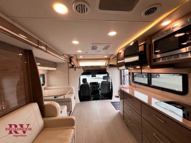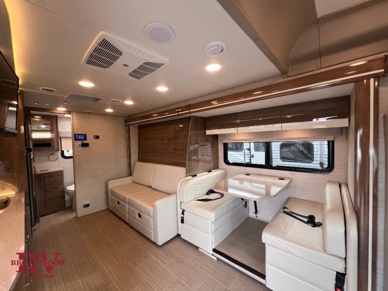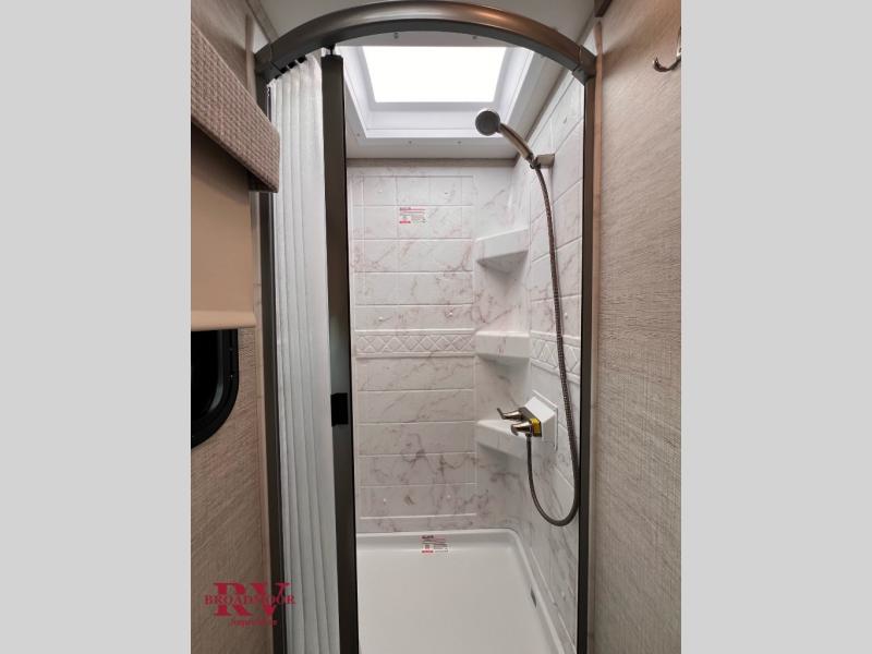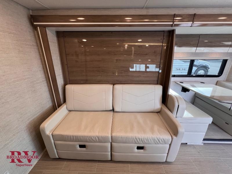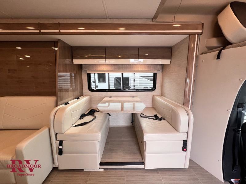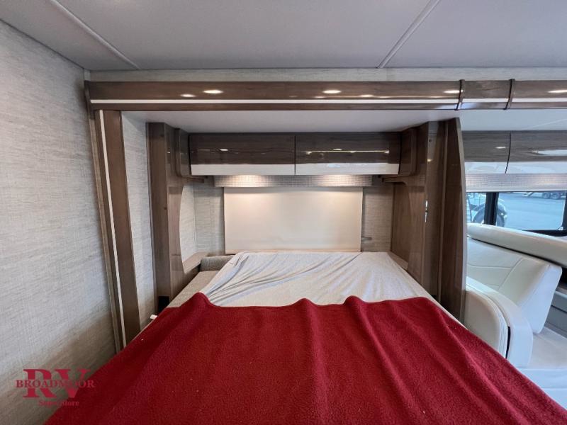 Travel the countryside for new scenery, adventures and memories in this motorhome that offers a versatile living and sleeping area, a booth dinette for dining and relaxing, plus a cab-over bunk for overnight guests. The queen Murphy bed offers a comfortable place to sleep after you have enjoyed the sofa during the daytime. The slide out gives you more floor space to move from the front swivel driver and passenger seats to the rear full bathroom with a shower and a wardrobe, plus a window for some natural lighting. The galley kitchen comes complete with a convection microwave and two-burner cooktop, plus a large pantry for dry goods and a 6 cu. ft. refrigerator. And there are options to choose from to enhance this already luxurious and fully-featured coach such as theater seating in place of the dinette and/or a B-Plus front cap with overhead storage instead of the cab-over bunk.