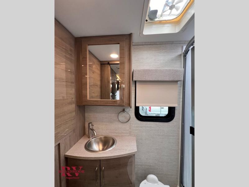 With any Melbourne Prestige Class C diesel motorhome by Jayco, every sidewall, rear wall and slide room wall is bonded together with Stronghold VBL lamination to create the lightest, yet strongest, construction available in the RV industry, plus there is a one-piece, seamless front cap that resists wear and tear from years on the road. The interior offers an overhead bunk with 750 lbs. capacity which is way over the industry standard and allows for more overnight guests. And you will find seatbelts installed in every designed seating location to keep your favorite people safe. Other standout features include the JAYCOMMAND powered by Fireplay giving you full control of key operations from your phone or tablet, a Truma AquaGo Comfort Plus tankless water heater, a water filtration system, ball-bearing drawer guides, and an 80-inch interior ceiling height with padded vinyl ceiling giving you more space to enjoy.
