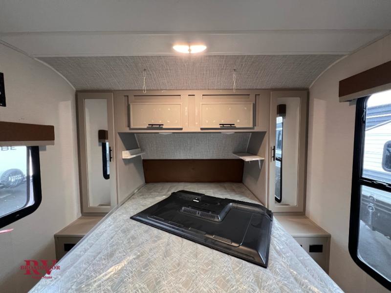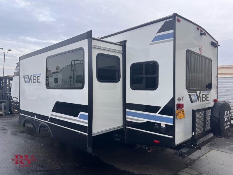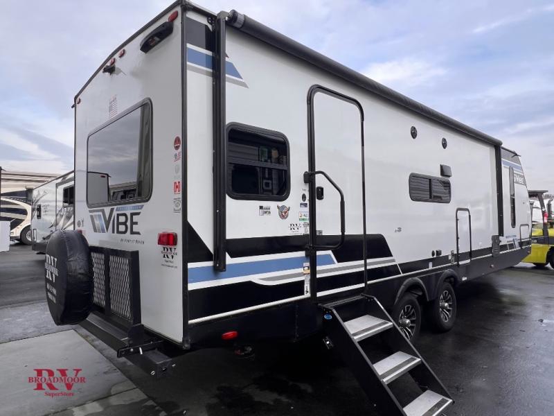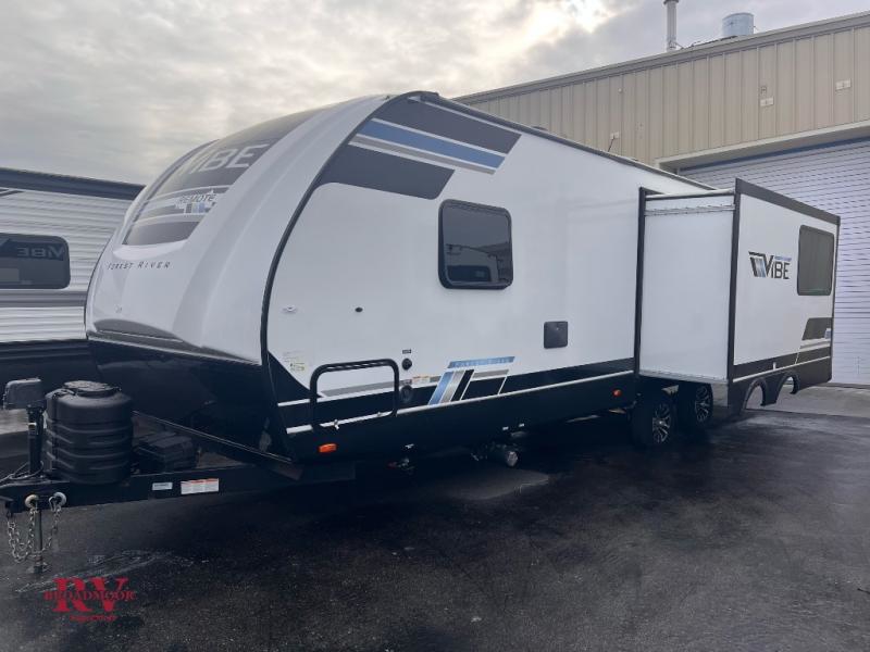Each Vibe travel trailer by Forest River includes Hyper Lyte construction and a durable laminated "Aluma Frame" for years of use. The heated and enclosed underbelly allows you to extend your camping season, and the walk-on truss roof with XTRM PVC roofing will be easy to keep clean. Inside, you'll enjoy best-in-class panoramic windows, a 12V oversized refrigerator, plus screwed and glued cabinets with residential steel ball bearing drawer guides on all drawers. These models also include cable and satellite prep and a digital TV antenna with a booster so you can stay connected to the outside world if you choose. Make the easy choice and choose a Vibe travel trailer today!