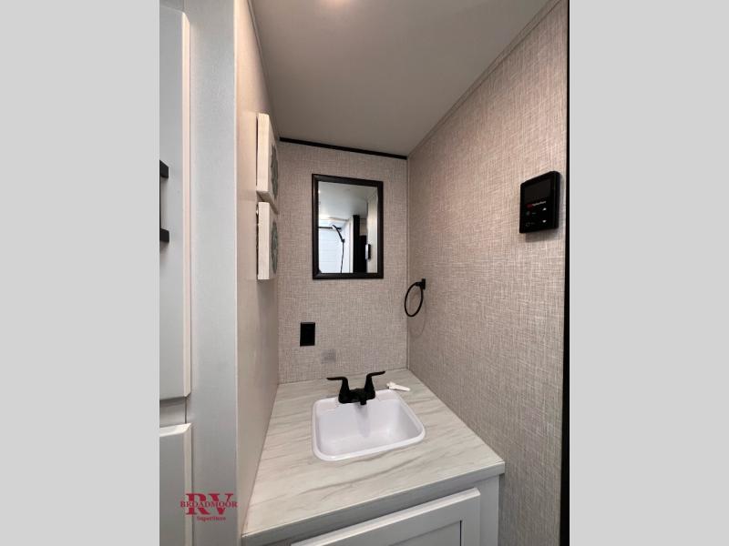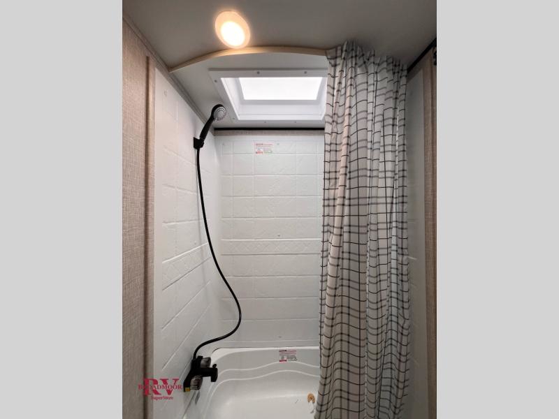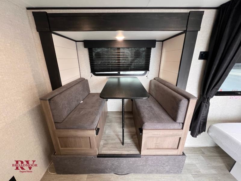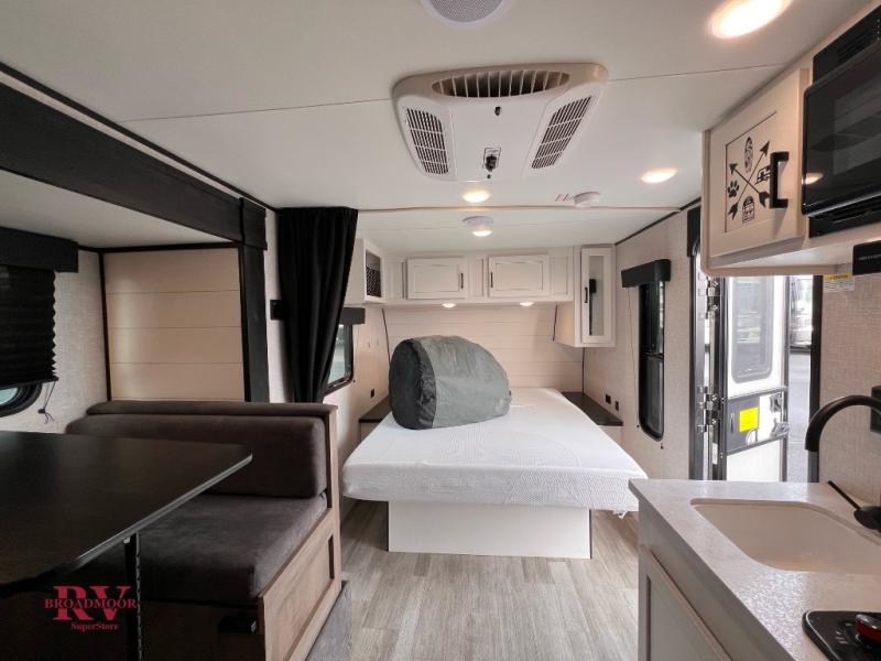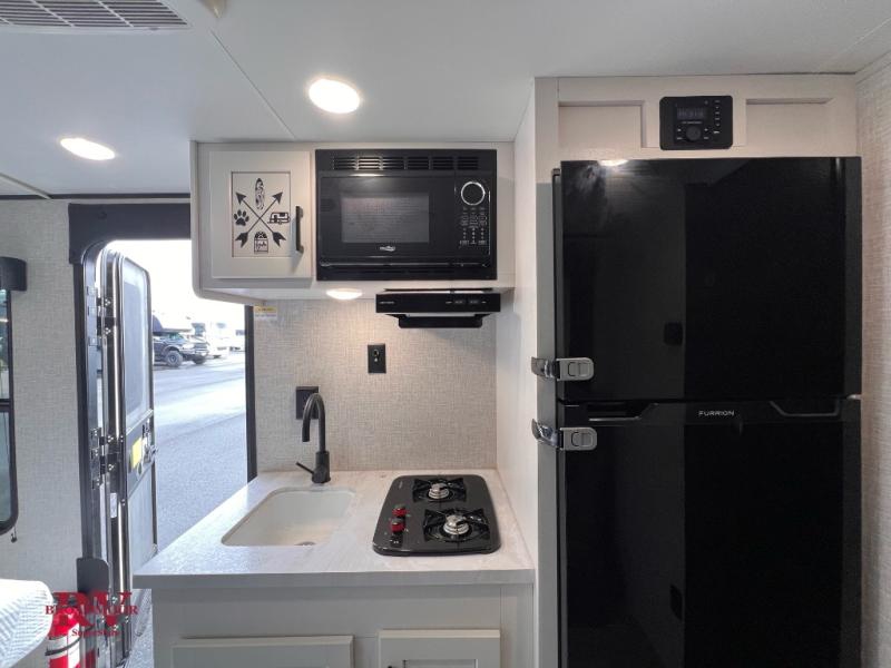 You and your family or friends can take this Jay Flight SLX travel trailer out for some fun! There is a queen bed up at the front, and there are also overhead cabinets and a bedroom wardrobe next to the bed for easy storage. The booth dinette rests on a single slide, so there is more floor space as you work in the kitchen, and it can accommodate one or two more campers for sleeping at night depending on size. The rear bathroom gives you space and privacy, and it also offers you a linen closet to store your towels. For other storage needs, you can use the 8 cu. ft. 12V refrigerator and the exterior storage compartments.