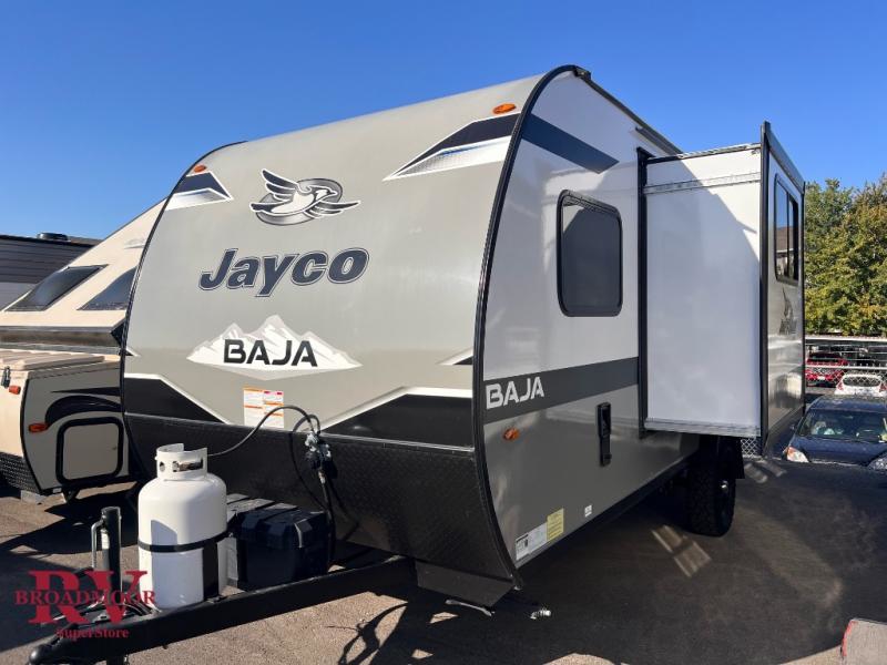 The Jayco Jay Flight SLX travel trailer is quite easy to own because it is lightweight, and it comes with a single axle. Built on a fully integrated A-frame with galvanized-steel, impact-resistant wheel wells, the Jay Flight SLX has quality at its very foundation. That quality continues on to the electric self-adjusting brakes, easy-lube hubs, Magnum Truss roof system, and LP quick connect. Some of what the mandatory Customer Value Package includes backup camera prep, Keyed-Alike entry and baggage doors, marine grade exterior speakers, and an on-demand tankless water heater. The optional STX Edition for Indiana built units only and the optional Baja Package built for Idaho units only includes Goodyear off-road tires, an enclosed underbelly, a deluxe graphics package, and a wide-stance axle to name a few features.